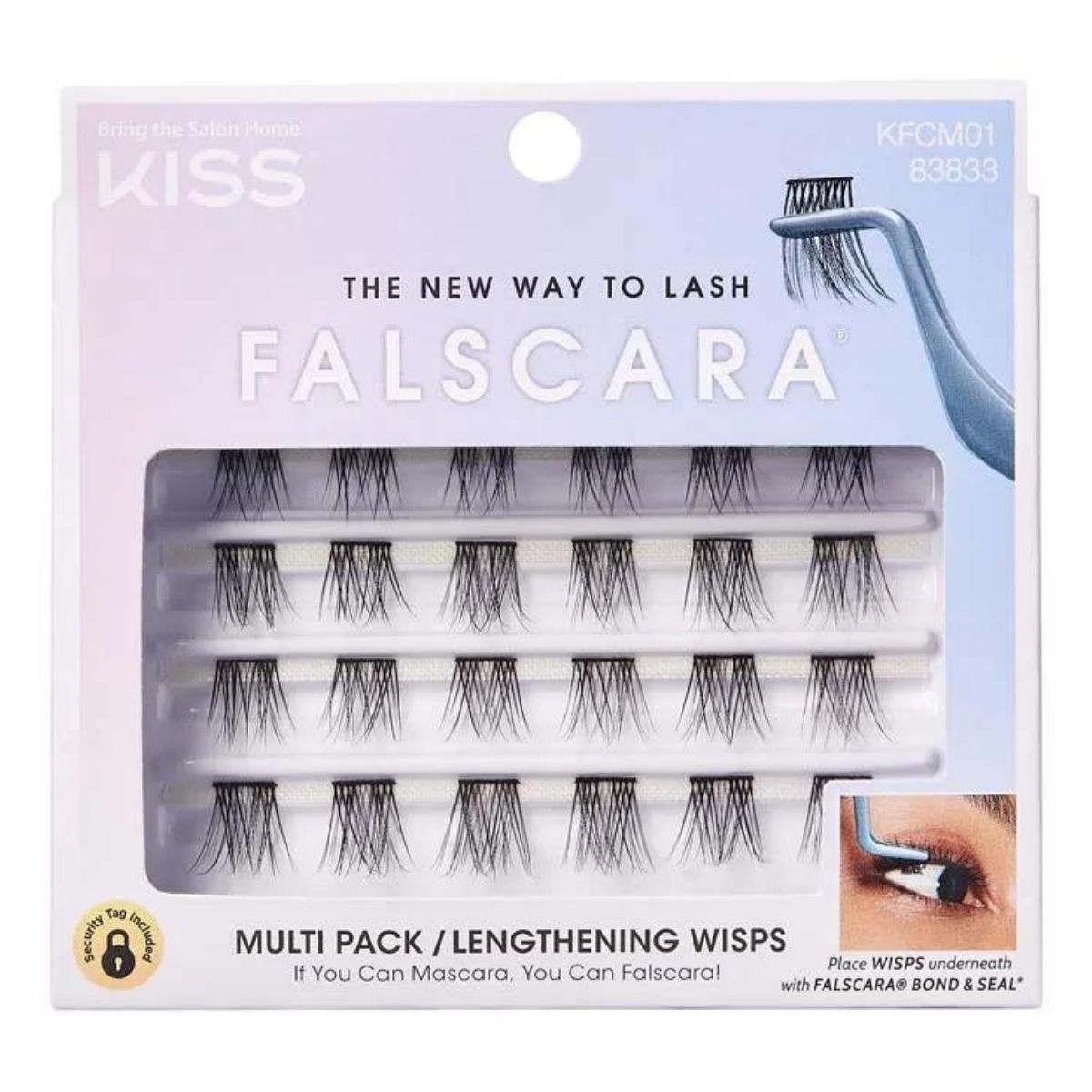KISS FALSCARA é uma nova forma de alongar seus cílios! Uma extensão de cílios perfeita, bem mais rápida, com menos complicações e menos despesas. O Falscara Wisps, possui uma tira ultrafina e fios leves como uma pluma, garantindo um acabamento premium. Deve ser aplicado abaixo dos cílios naturais para um acabamento perfeito e confortável.