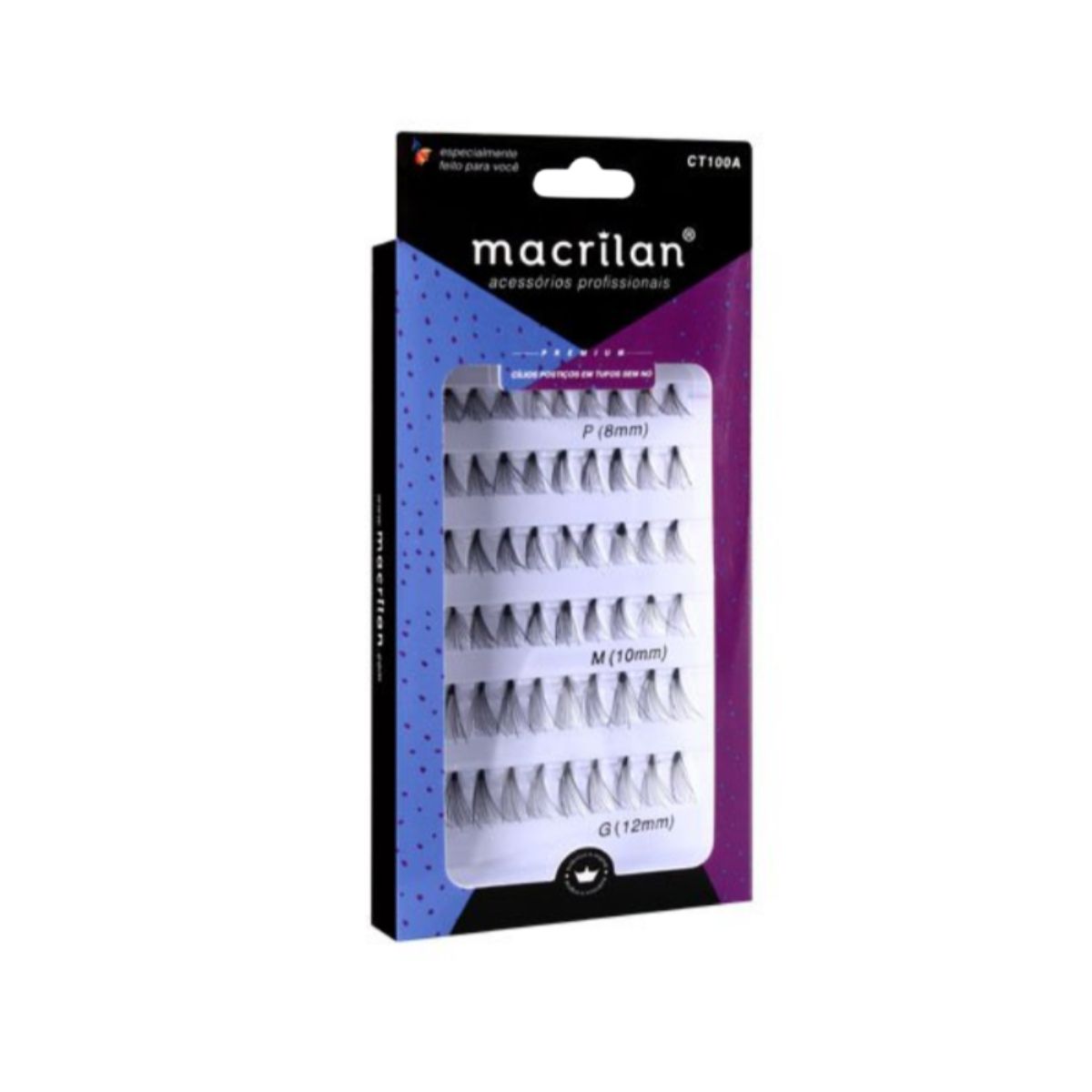 Cílios Postiços em Tufos sem Nó: Cílios Postiços em Tufos sem Nó Macrilan CT100A desenvolvido em 3 tamanhos: 8mm, 10mm e 12mm, todos com 10 fios em cada tufo, indicado para uso pessoal e profissional.
