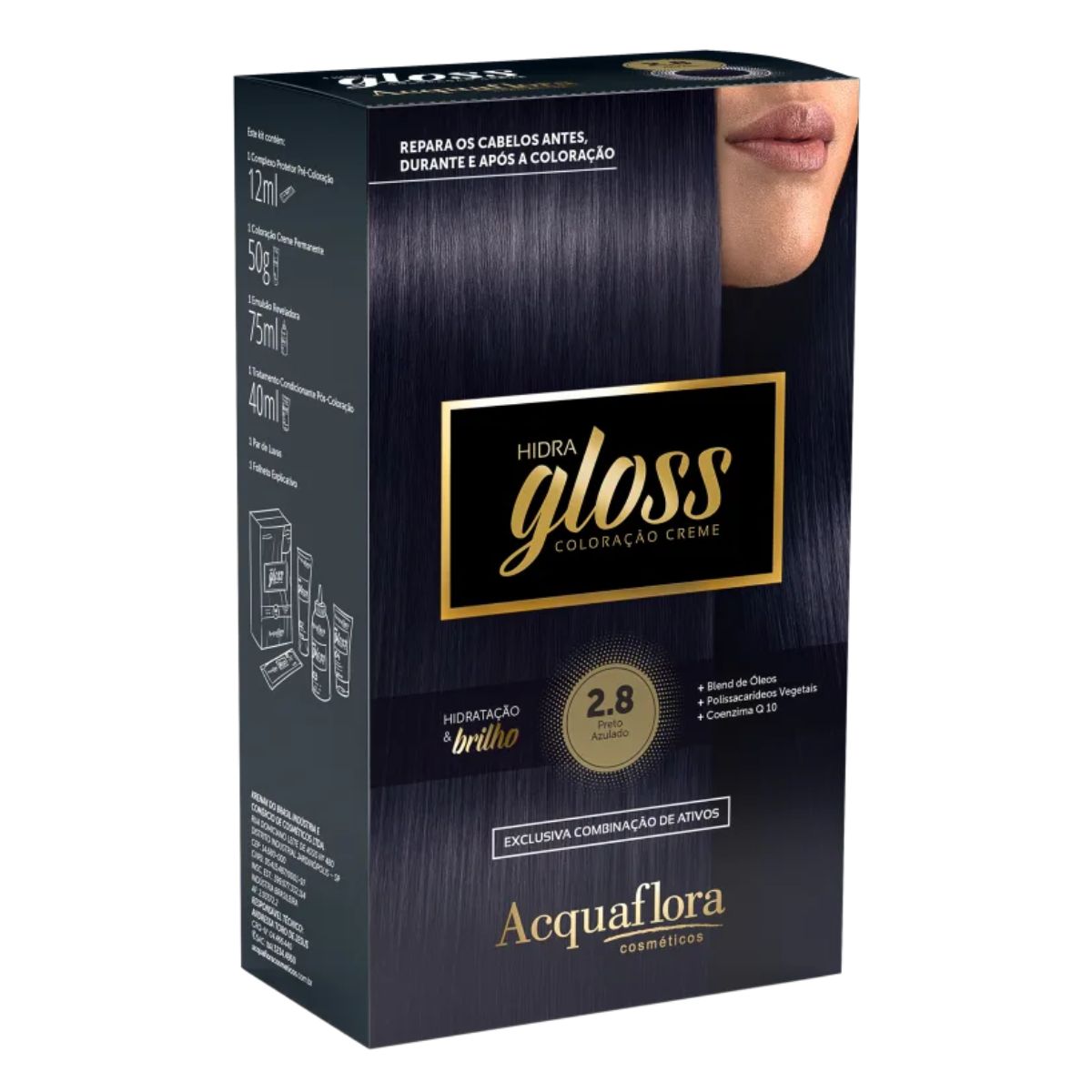 Coloração permanente para todos os tipos de cabelo. Acquaflora Hidra Gloss é perfeito para quem deseja mudar a cor dos fios, para tons mais claros ou escuros, sem comprometer a saúde da fibra capilar.A Coloração Permanente Acquaflora Hidra Gloss traz cores incríveis para alterar a cor do seu cabelo e promover uma cobertura total dos fios brancos. Apresenta um sistema exclusivo com o Complexo Protetor-Pré Coloração, enriquecida por óleos, e o Tratamento Condicionante Pós-Coloração, para garantir maciez, brilho e vitalidade para a fibra capilar por muito mais tempo.