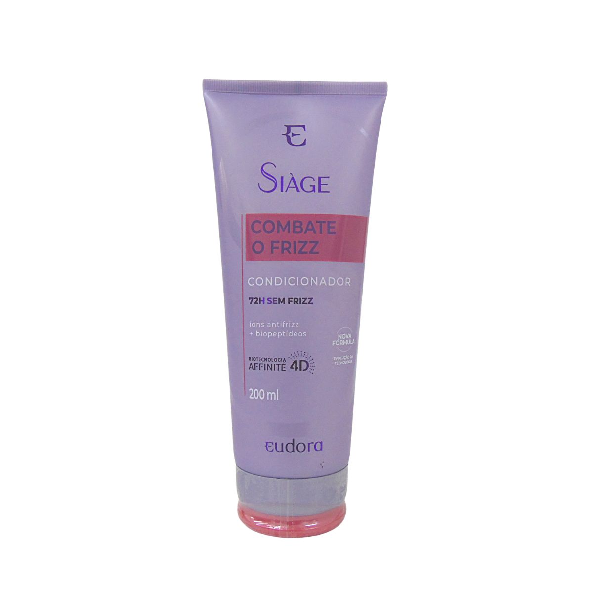 Condicionador Siage Eudora Combate o Frizz: é ideal para manter os fios alinhados e protegidos do frizz por até 72 horas.Possui fórmula hidratante que desembaraça os fios por até 30h. Deixa as cutículas seladas e ajuda a controlar o frizz, proporcionando cabelos super macios.Disciplina até os fios mais rebeldes!