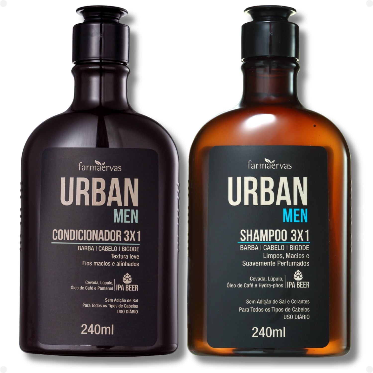 Descubra a praticidade e eficiência do Kit Farmaervas Urban Men: Shampoo e Condicionador 3x1 240ml, a solução completa para os cuidados diários de barba, cabelo e bigode do homem moderno. Desenvolvido pela FARMAERVAS, este kit oferece uma experiência de higiene e tratamento inspirada nas melhores IPAs, garantindo fios e pelos limpos, hidratados e com um aroma agradável. Ideal para quem busca otimizar a rotina sem abrir mão da qualidade, o Shampoo 3x1 Urban Men e o Condicionador 3x1 Urban Men proporcionam maciez, brilho e alinhamento, transformando o cuidado pessoal em um momento de puro bem-estar.