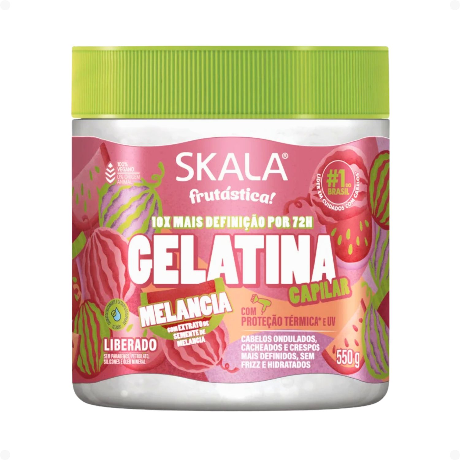 Para a felicidade dos Skalovers, Dona Skala ampliou a rotina de cuidados com a chegada dos finalizadores. A Gelatina Capilar Skala Frutástica Melancia chegou para dar um toque frutado e divertido à sua rotina de cuidados com os cabelos! Ideal para quem quer dar aquela definição especial aos fios e busca um produto com proteção térmica. Mergulhe na refrescância da melancia para revitalizar seus cachos, proporcionando nutrição, definição e um aroma irresistível! Em sua fórmula contém Extrato de Semente de Melancia, ideal para trazer maciez, brilho e força aos fios. Uma experiência sensorial única para deixar seus cachos radiantes e prontos para arrasar! Cabelos ondulados, cacheados e crespos mais definidos, sem frizz e hidratados. Além de definir, nutrir e proteger, a Gelatina Capilar Skala Frutástica Melancia é perfeita para quem busca um tratamento vegano e cruelty-free. Indicada para todos os tipos de curvaturas, garante cachos revitalizados e cheios de vida.