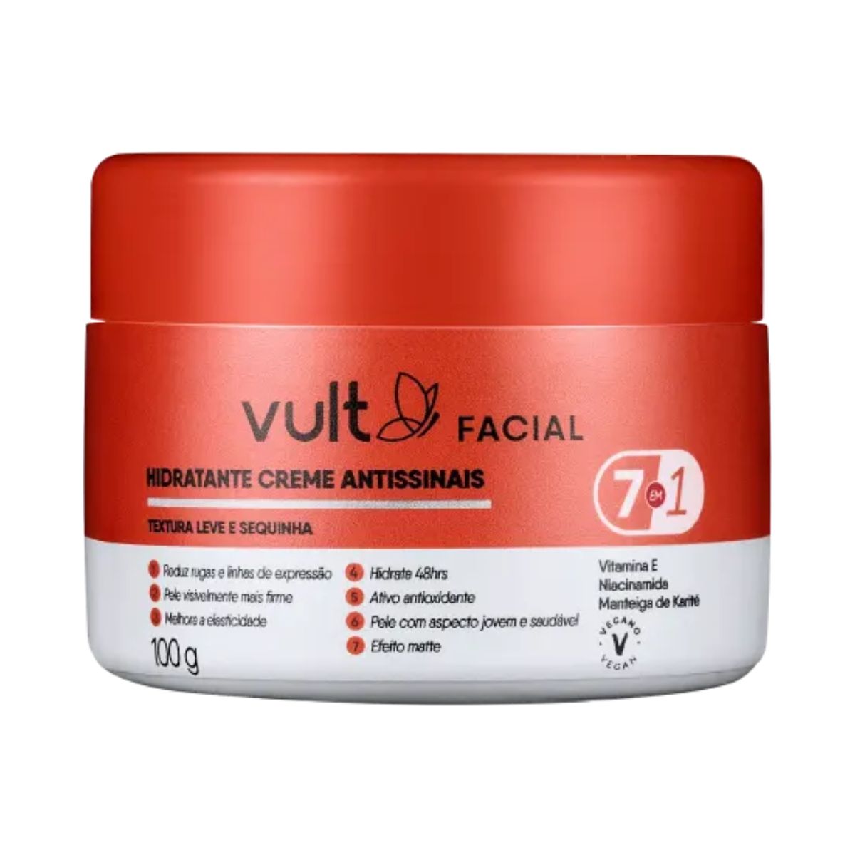 Creme hidratante facial. Vult Care Antissinais com ação 7 em 1, deixa a pele com aspecto jovem, saudável e radiante.