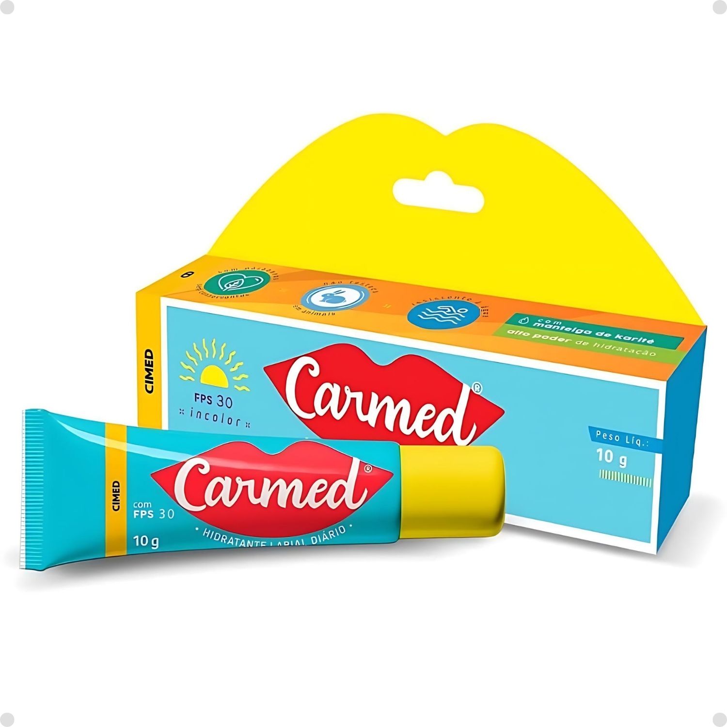 Carmed Hidratante Labial com FPS 30 proporciona proteção eficaz contra raios UVA e UVB, hidratação intensa e resistência à água.