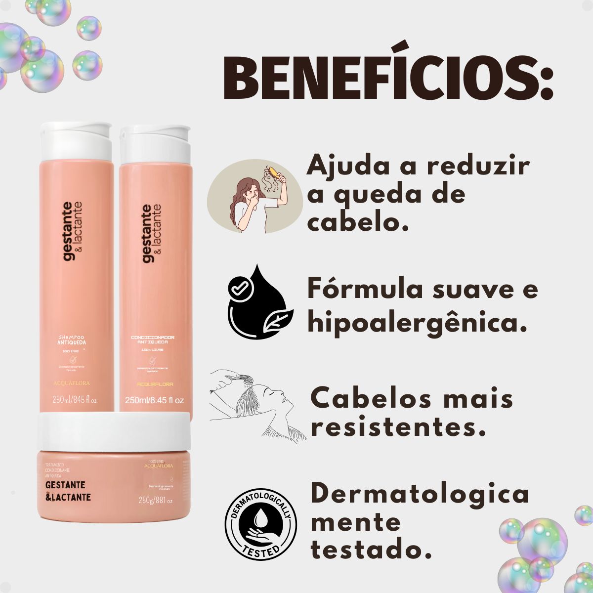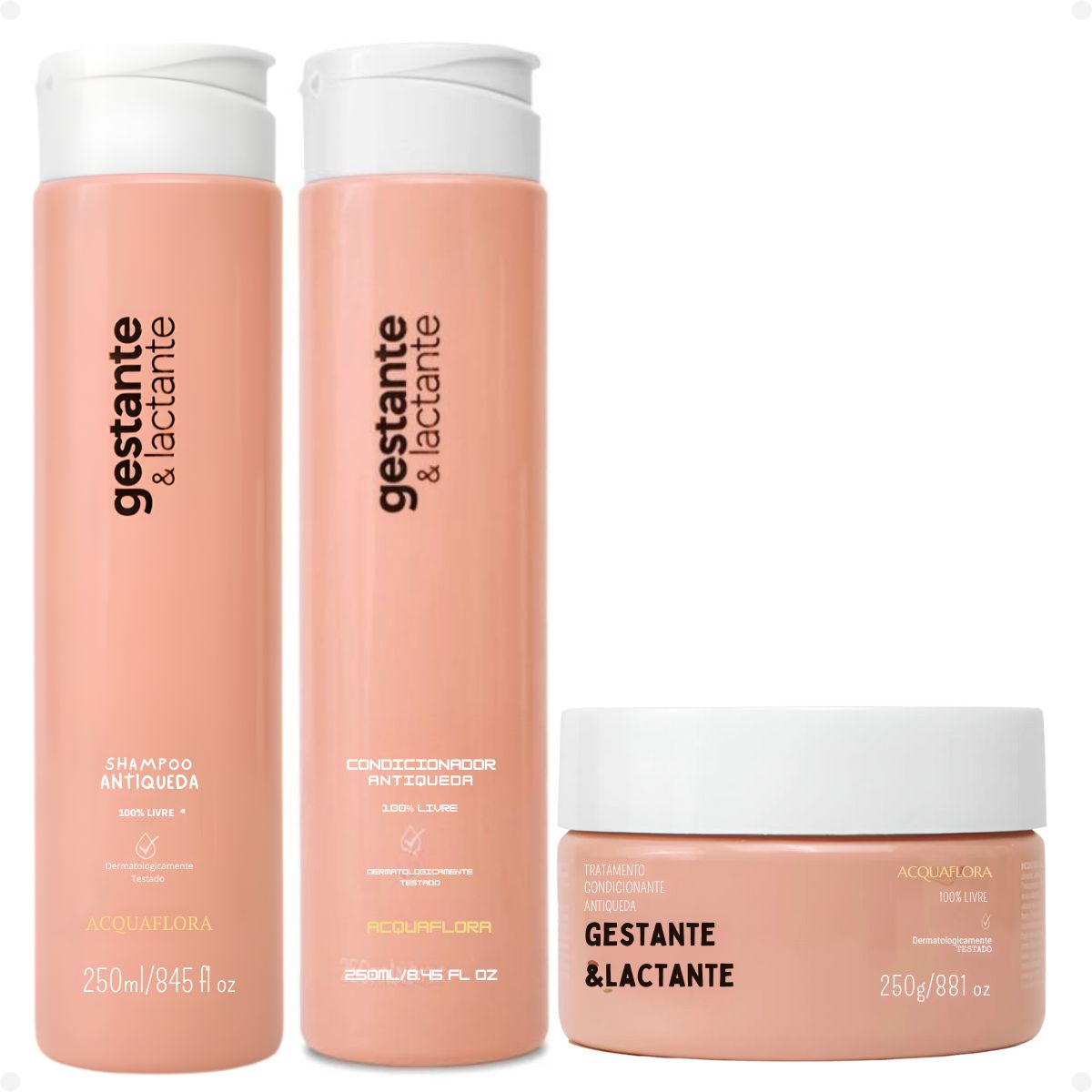Kit Acquaflora Gestante e Lactante Antiqueda: Shampoo, Condicionador 250ml e Máscara Capilar 250g