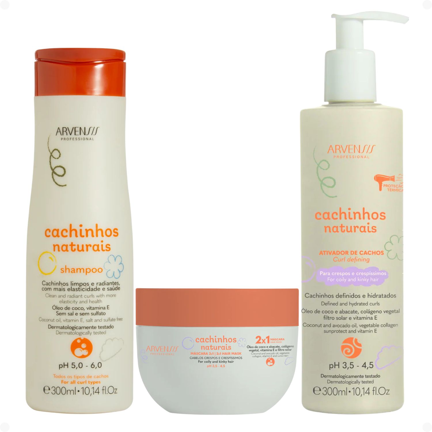 O Kit Arvensis Cachinhos Naturais para Cabelos Crespos e Crespíssimos foi desenvolvido para proporcionar cuidados especiais para cabelos com cachos definidos e volumosos. O shampoo limpa delicadamente o couro cabeludo e os fios, removendo impurezas sem agredir a estrutura do cabelo, mantendo a hidratação natural dos fios crespos e crespíssimos. O creme 2x1 é produto multifuncional que pode ser usado como condicionador ou máscara de hidratação, proporcionando nutrição profunda e suavizando os fios para um toque macio e sem frizz. Ideal para manter os cachos bem definidos e hidratados. O ativador de Cachos possui uma formulação que ajuda a definir os cachos, reduzindo o frizz e promovendo uma fixação natural, deixando os fios com movimento, brilho e volume controlado. Esse kit é perfeito para quem busca uma rotina de cuidados que respeita a estrutura dos cabelos crespos e crespíssimos, garantindo cachos bem cuidados e lindos!