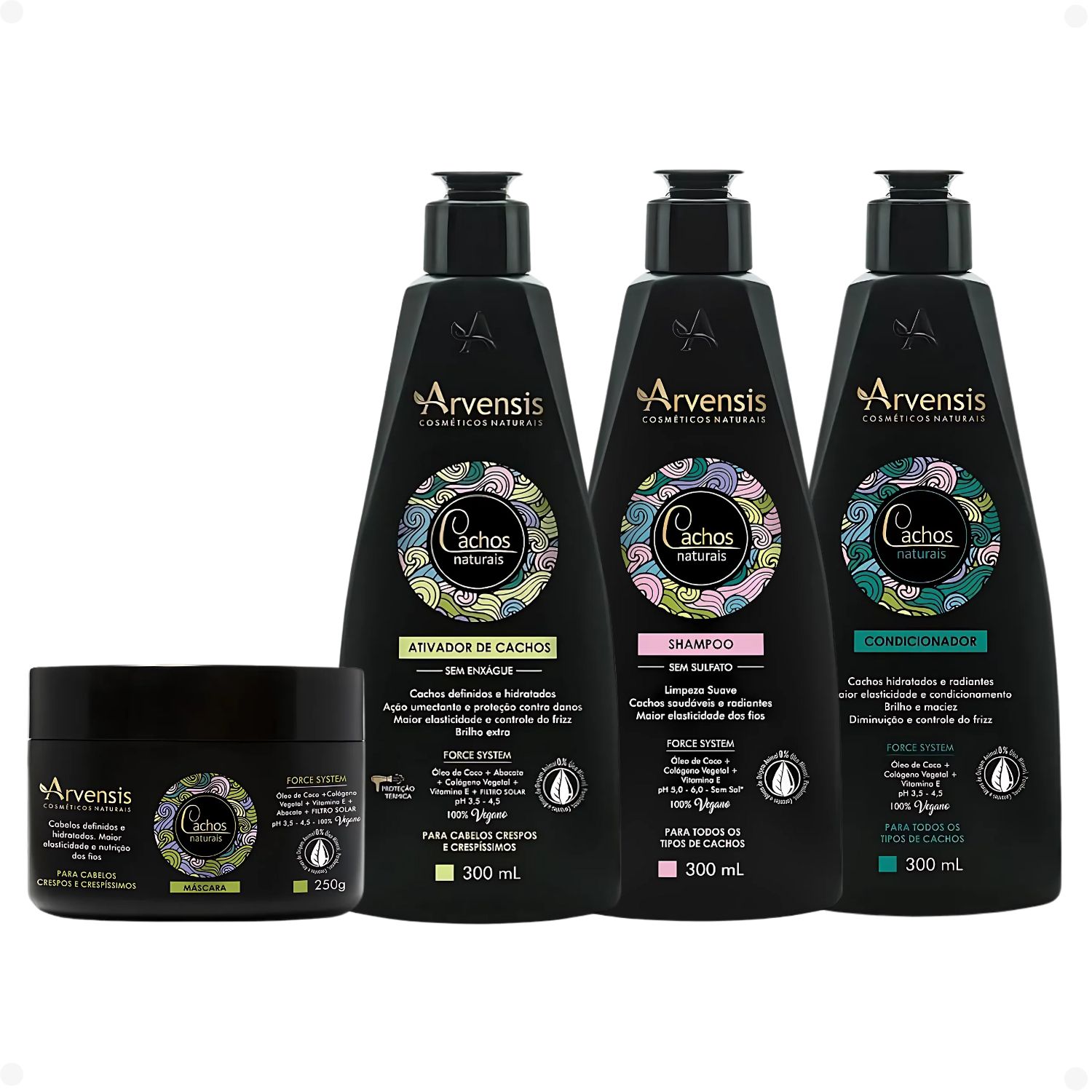 O Kit Arvensis Cachos Naturais para Cabelos Crespos e Crespíssimos foi formulado especialmente para atender às necessidades dos fios com curvaturas 4A, 4B e 4C, oferecendo hidratação intensa, definição, nutrição e controle de volume. Composto por Shampoo (300ml), Condicionador (300ml), Máscara de Tratamento (250g) e Ativador de Cachos (300ml), este kit promove um cuidado completo para manter os fios saudáveis, macios e com cachos definidos por mais tempo. O shampoo limpa suavemente sem ressecar, respeitando o equilíbrio natural do couro cabeludo. O condicionador ajuda no desembaraço e promove emoliência e brilho. A máscara de hidratação profunda nutre e fortalece a fibra capilar, combatendo o ressecamento e a quebra. Já o ativador de cachos define, modela e controla o frizz, sem deixar os fios pesados ou oleosos. A linha é vegana, cruelty-free e liberada para Low Poo, sendo totalmente livre de sulfatos, parabenos, petrolatos e silicones pesados. Indicada para cabelos crespos, crespíssimos e também para quem está passando pela transição capilar, essa rotina completa fortalece e valoriza a textura natural dos fios. Com o uso contínuo, o resultado são cabelos profundamente hidratados, definidos, fortalecidos e com movimento natural.