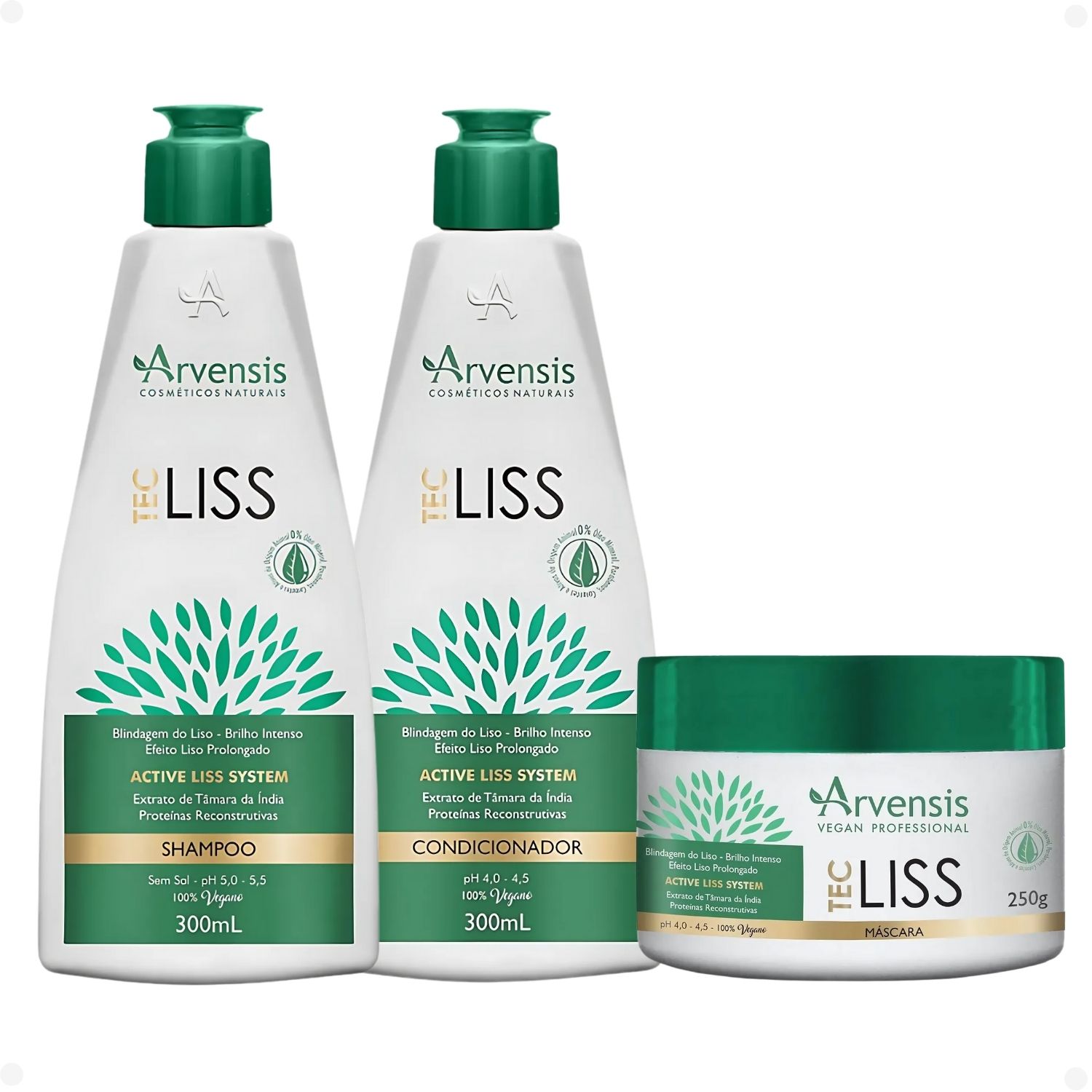 O Kit Arvensis Tec Liss com Shampoo 300ml, Condicionador 300ml e Máscara 250g é um tratamento completo para cabelos lisos, desenvolvido para limpar suavemente, hidratar profundamente e proporcionar um alinhamento duradouro dos fios. Formulado com extrato de tâmara da Índia e ativos vegetais, esse trio atua desde a lavagem até o tratamento intensivo, promovendo brilho, maciez e controle do frizz. O shampoo realiza uma limpeza eficaz sem ressecar, preparando os fios para receber os ativos da linha. O condicionador complementa o cuidado com ação desembaraçante, nutritiva e seladora. Já a máscara oferece uma hidratação profunda, repondo nutrientes essenciais e tratando a fibra capilar de forma intensiva. Todos os produtos são veganos, cruelty-free e livres de sal, parabenos, sulfatos agressivos e petrolatos, sendo ideais para cabelos lisos naturais ou alisados quimicamente. O resultado são cabelos visivelmente mais saudáveis, sedosos, alinhados e com o efeito liso prolongado.