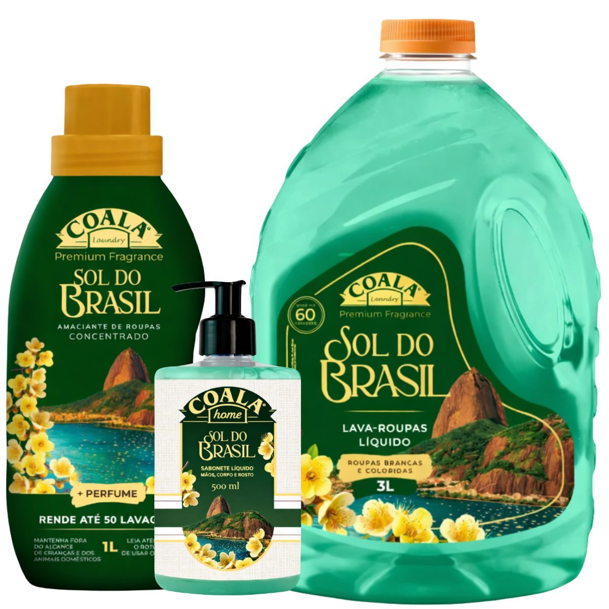 Kit Coala Sol do Brasil com Lava-Roupas 3L + Amaciante 1L + Sabonete Líquido 500ml