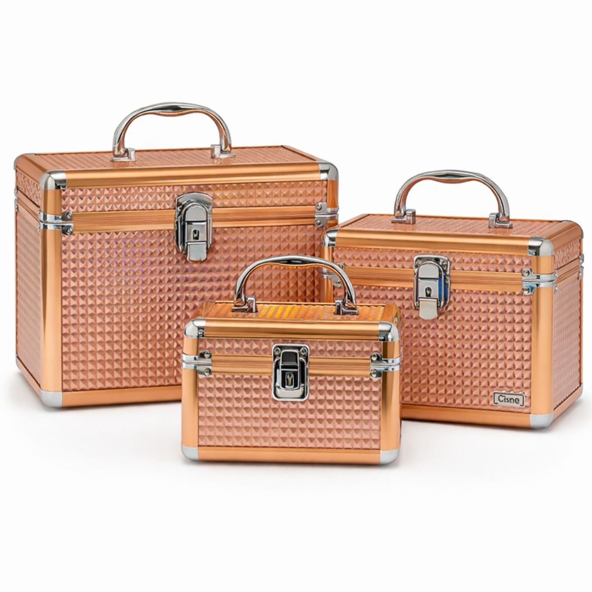 Descubra a combinação perfeita de estilo e funcionalidade com o Kit com 3 Maletas de Maquiagem Cisne Salmão Csn-a133 da RUBY'S. Este conjunto elegante é ideal para organizar e transportar seus itens de maquiagem e acessórios com total segurança e sofisticação. Projetado para atender tanto profissionais da beleza quanto entusiastas, ele oferece a solução definitiva para manter seus produtos organizados e sempre à mão, seja em casa, em viagens ou no trabalho.