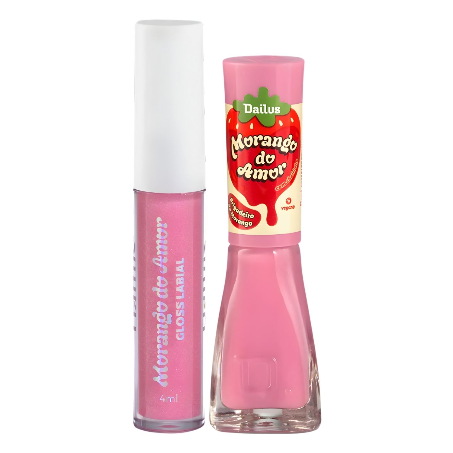 Kit Dailus Morango Do Amor Brigadeiro De Morango: Gloss Labial 4ml e Esmalte Cremoso 8ml