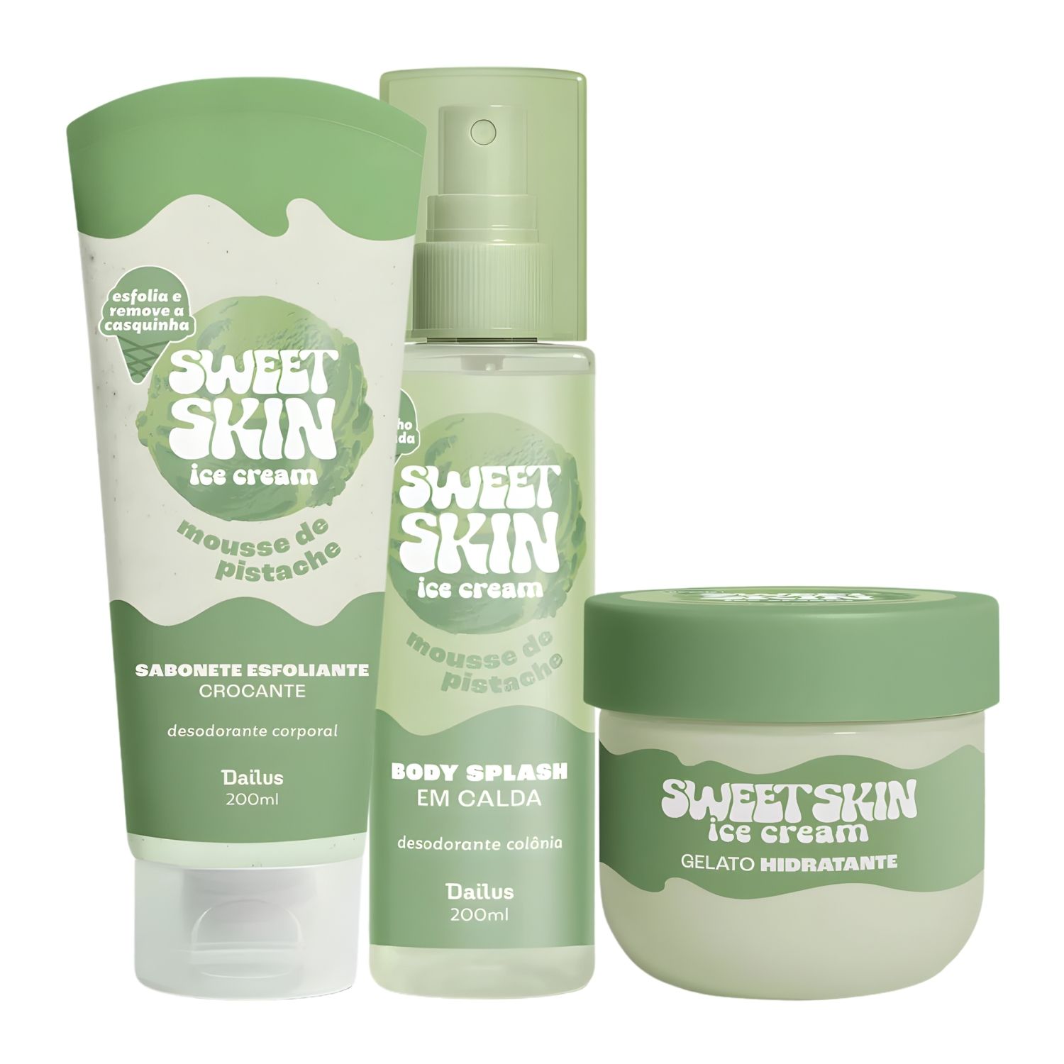 O Kit Dailus Sweet Skin Ice Cream Mousse De Pistache é perfeito para a sua rotina diária de autocuidado, transformando o banho em um ritual de relaxamento e bem-estar. Ideal para presentear alguém especial ou para desfrutar de um momento de spa em casa, proporcionando uma pele macia, hidratada e deliciosamente perfumada em qualquer ocasião.