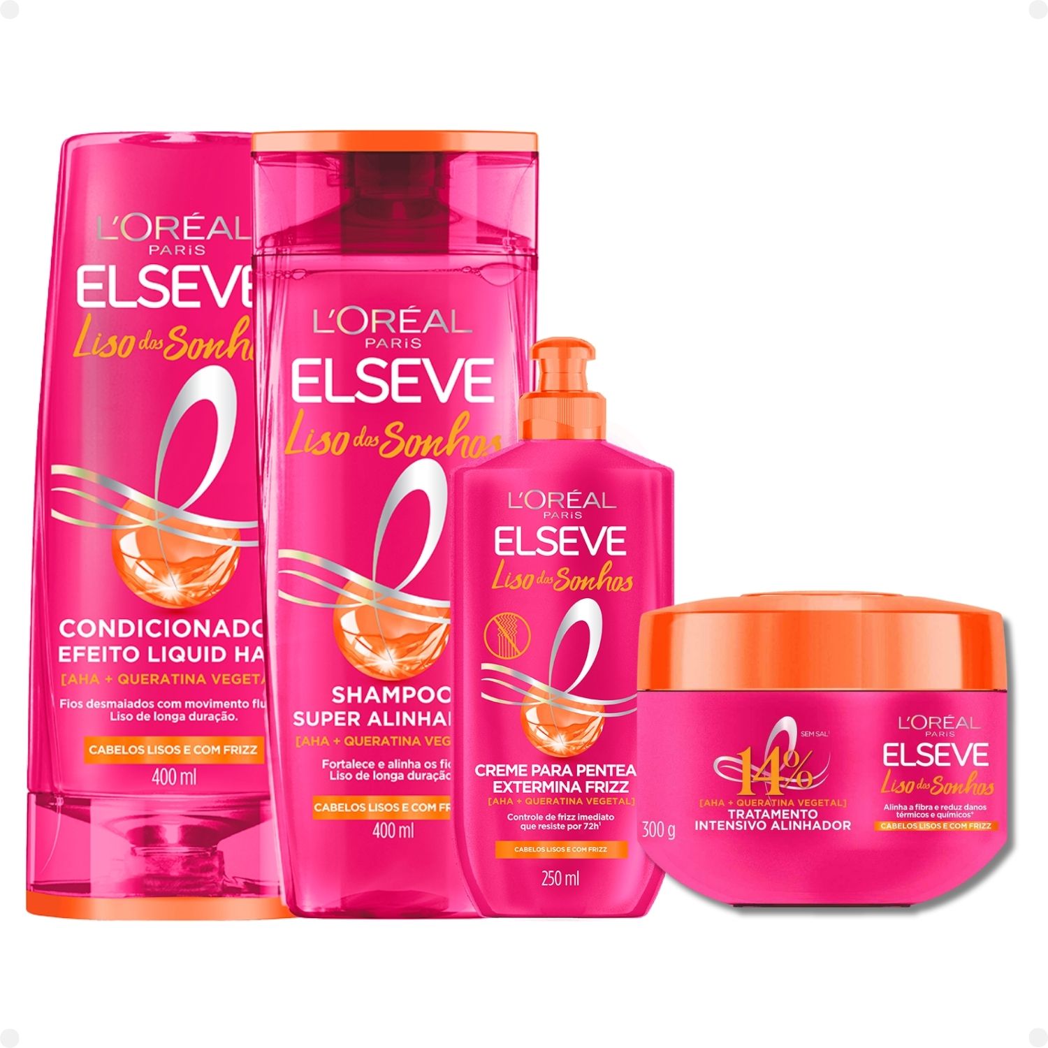 Kit Elseve Liso dos Sonhos: Máscara Tratamento 300g + Shampoo e Condicionador 400ml + Creme para Pentear 250ml