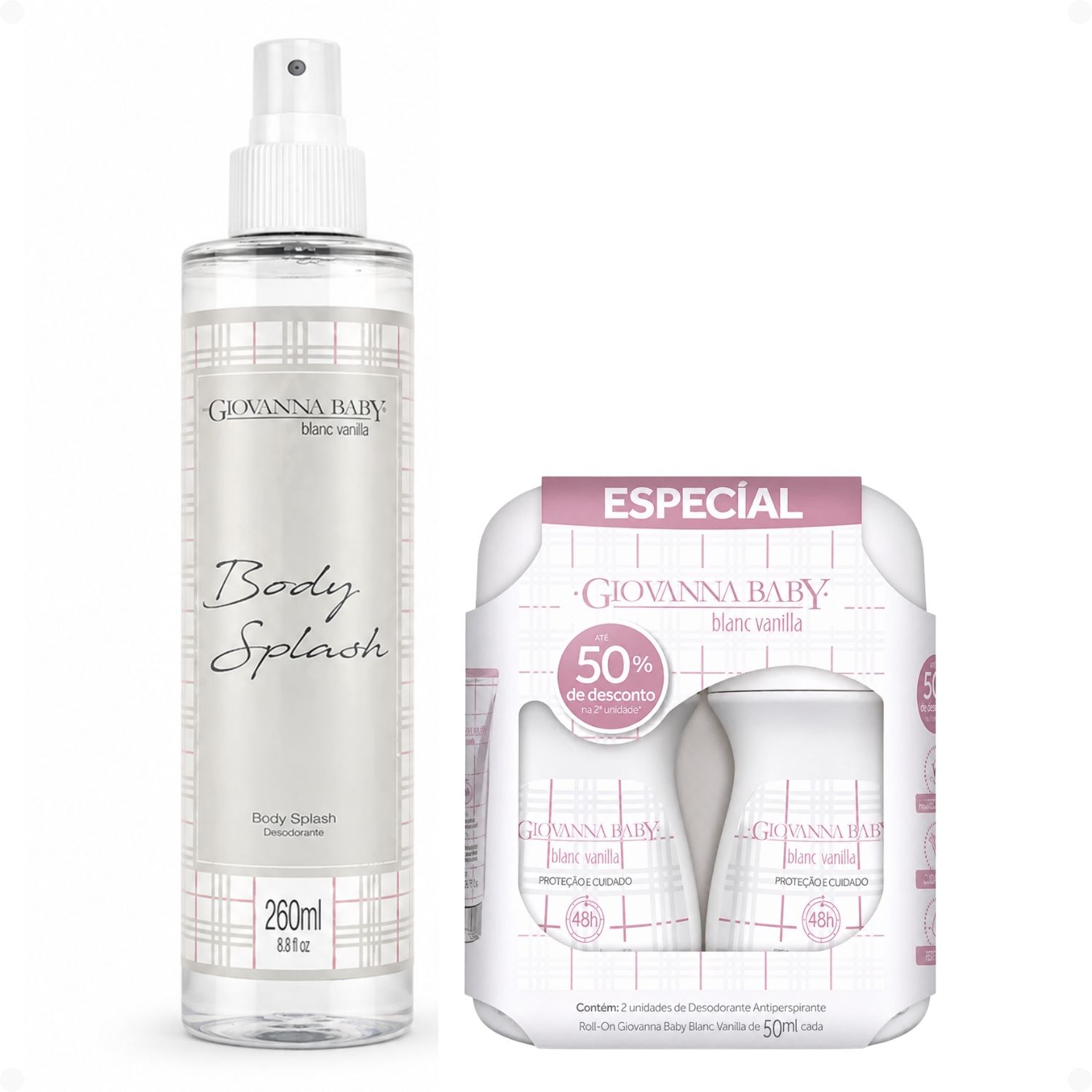 Kit Giovanna Baby Blanc Vanilla Body Splash 260ml + 2 Desodorantes Roll-On 50ml