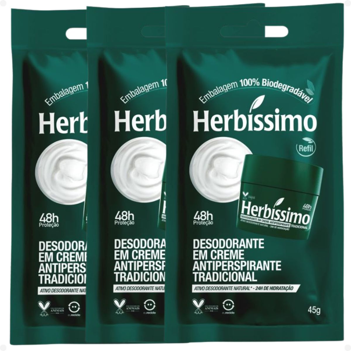 Garanta proteção eficaz e duradoura contra o suor e o mau odor com o Desodorante Em Creme Refil Herbíssimo Tradicional Antiperspirante 45g. Desenvolvido pela tradicional marca HERBISSIMO, este refil é a escolha inteligente para quem busca economia sem abrir mão da qualidade e do cuidado com o meio ambiente. Sinta a confiança de estar protegido o dia todo, com uma fórmula suave que hidrata a pele e evita irritações. Ideal para homens e mulheres que prezam por praticidade e bem-estar, este refil é perfeito para manter a sua rotina de higiene pessoal em dia, com a vantagem de um produto sustentável e econômico.