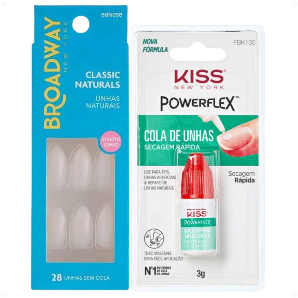 Kit Kiss New York: Unhas Postiças Stiletto Longo Power e Cola De Unhas 3g