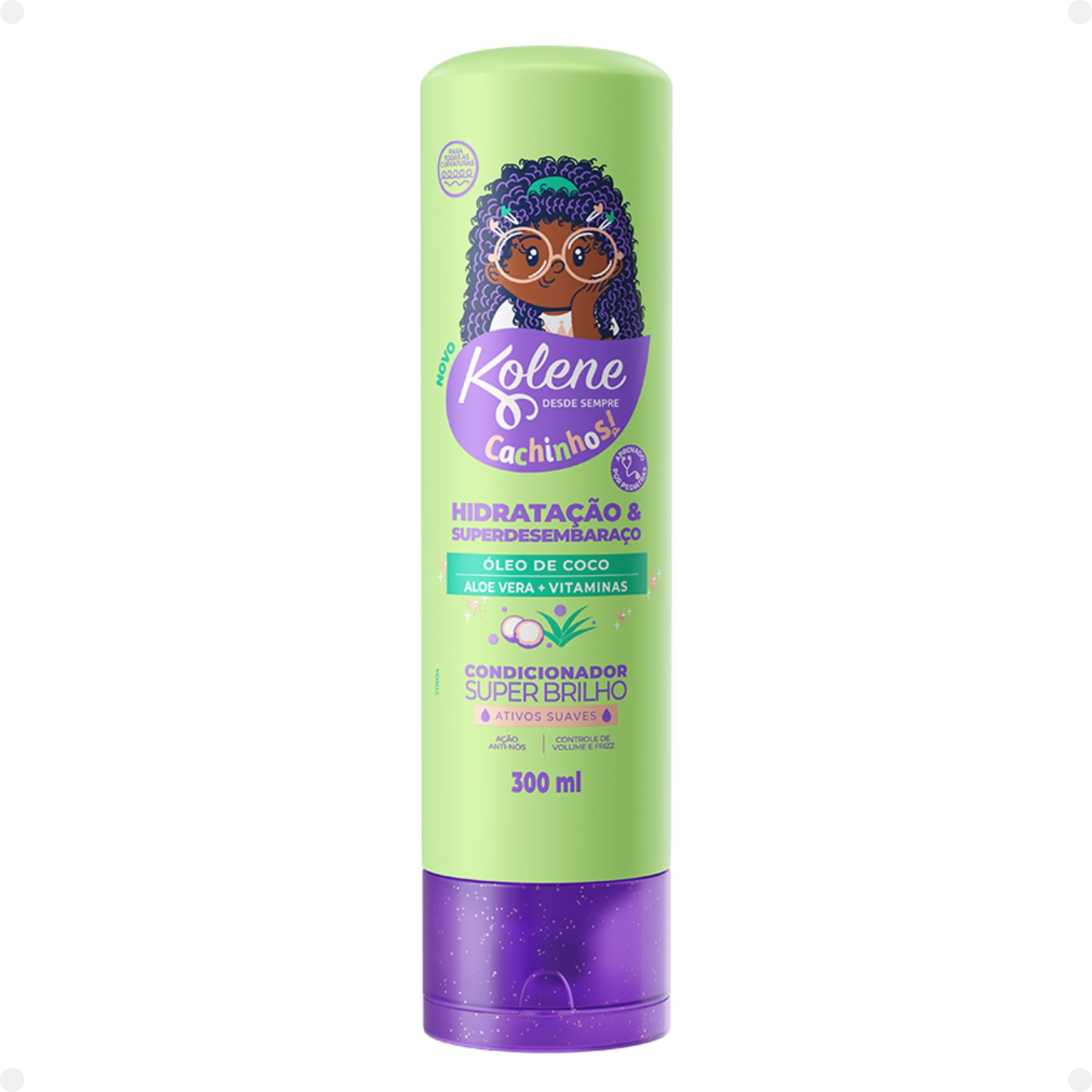 Sua fórmula é indicada para todos os tipos de cachinhos, é Hipoalergênica, Dermatologicamente testada, Aprovada por Pediatras, 100% Vegana e Liberada. Ação Anti-nós, Controle de volume e Frizz e Brilho intenso. A Linha, que conta com ativos suaves e o poder do Óleo de Coco, Aloe Vera e Vitaminas, oferece Ação Anti-nós, Controle de volume e Frizz. Além disso, é indicada para crianças a partir de 3 anos.