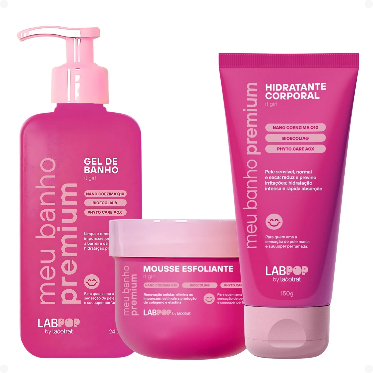 Sinta-se uma verdadeira It Girl com o Kit LabPop by Labotrat It Girl, uma coleção exclusiva desenvolvida para quem busca uma pele radiante e um corpo impecável. Este kit de autocuidado, composto por Gel de Banho, Mousse Esfoliante e Hidratante Corporal, proporciona uma experiência única, deixando sua pele macia, profundamente hidratada e com uma fragrância irresistível. Desperte seus sentidos e sinta-se confiante e poderosa em qualquer ocasião com a qualidade LABOTRAT.