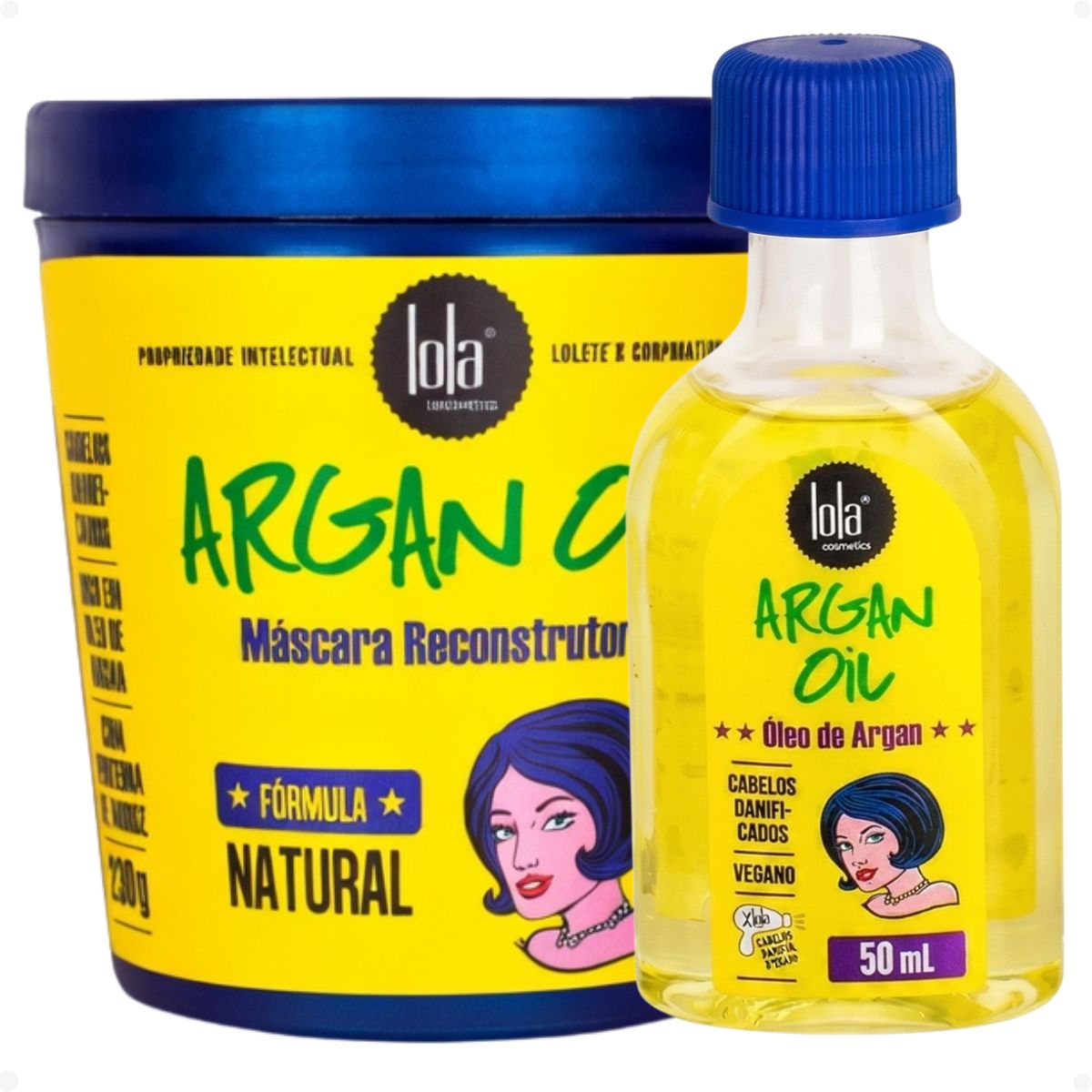 Kit Lola Argan Oil Máscara 230g + Óleo 50ml Nutrição Brilho e Proteção Térmica