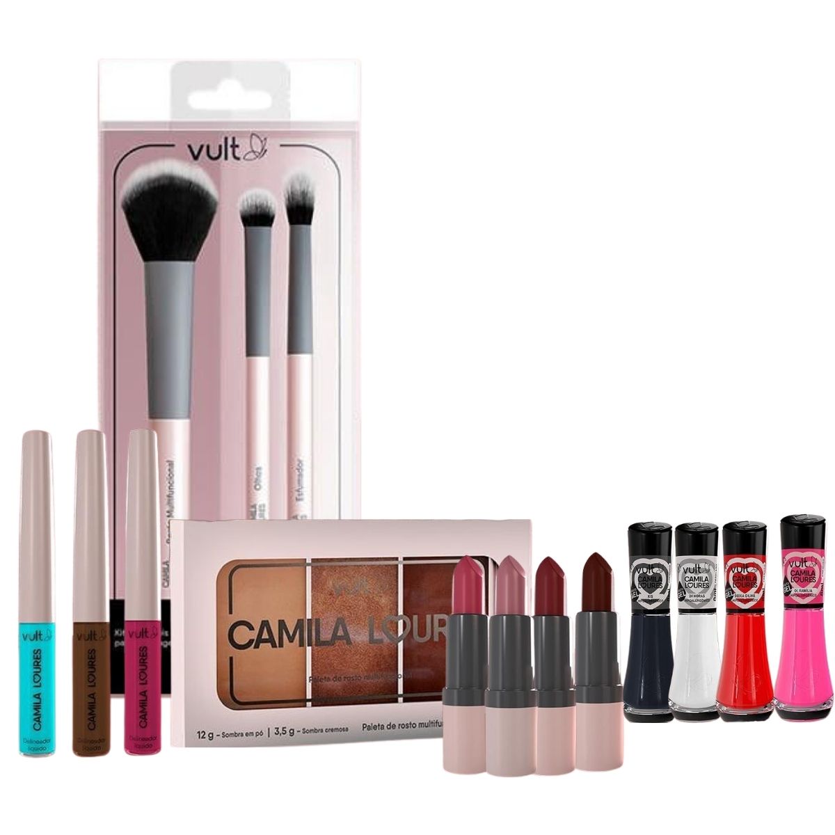 Linha da vult em collab com a Camila Loures já é sucesso! Cores lindas e SUPER TENDÊNCIA, a linha é composta por esmaltes, delineadores coloridos, batons, paleta multfuncional, paleta de sombras e kit de pincéis.