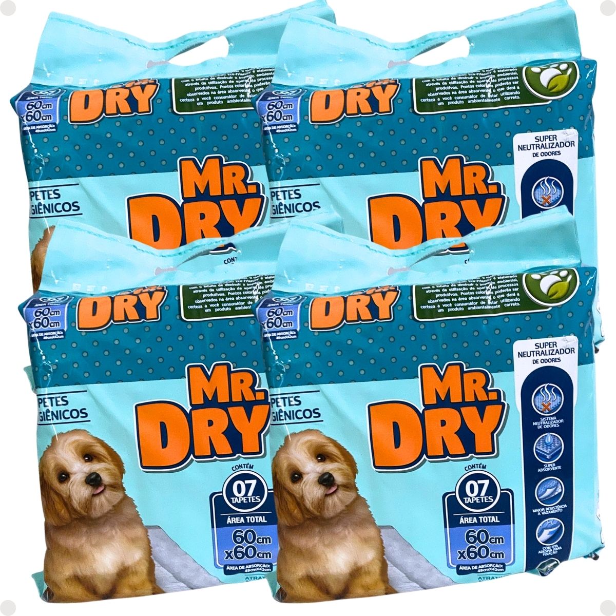 - 04 Tapete Higiênico Mr. Dry Com 7 Unidades 60cm x 60cm