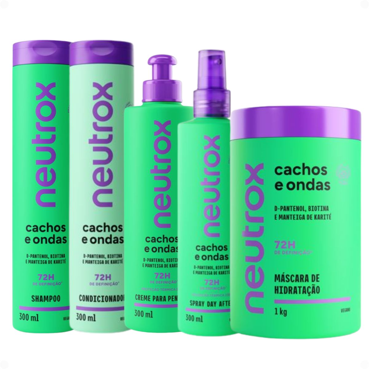 Kit Neutrox Cachos e Ondas: Shampoo, Condicionador 300ml, Máscara Capilar 1kg, Creme Para Pentear e Spray Day After 300ml