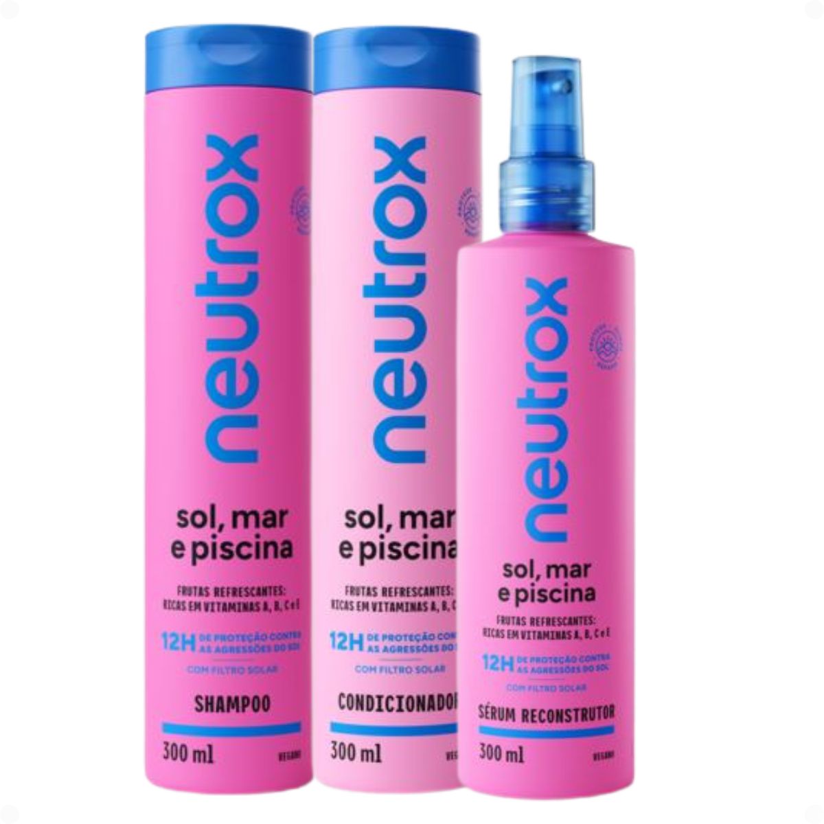 Kit Neutrox Sol, Mar e Piscina: Shampoo, Condicionador e Sérum Reconstrutor 300ml