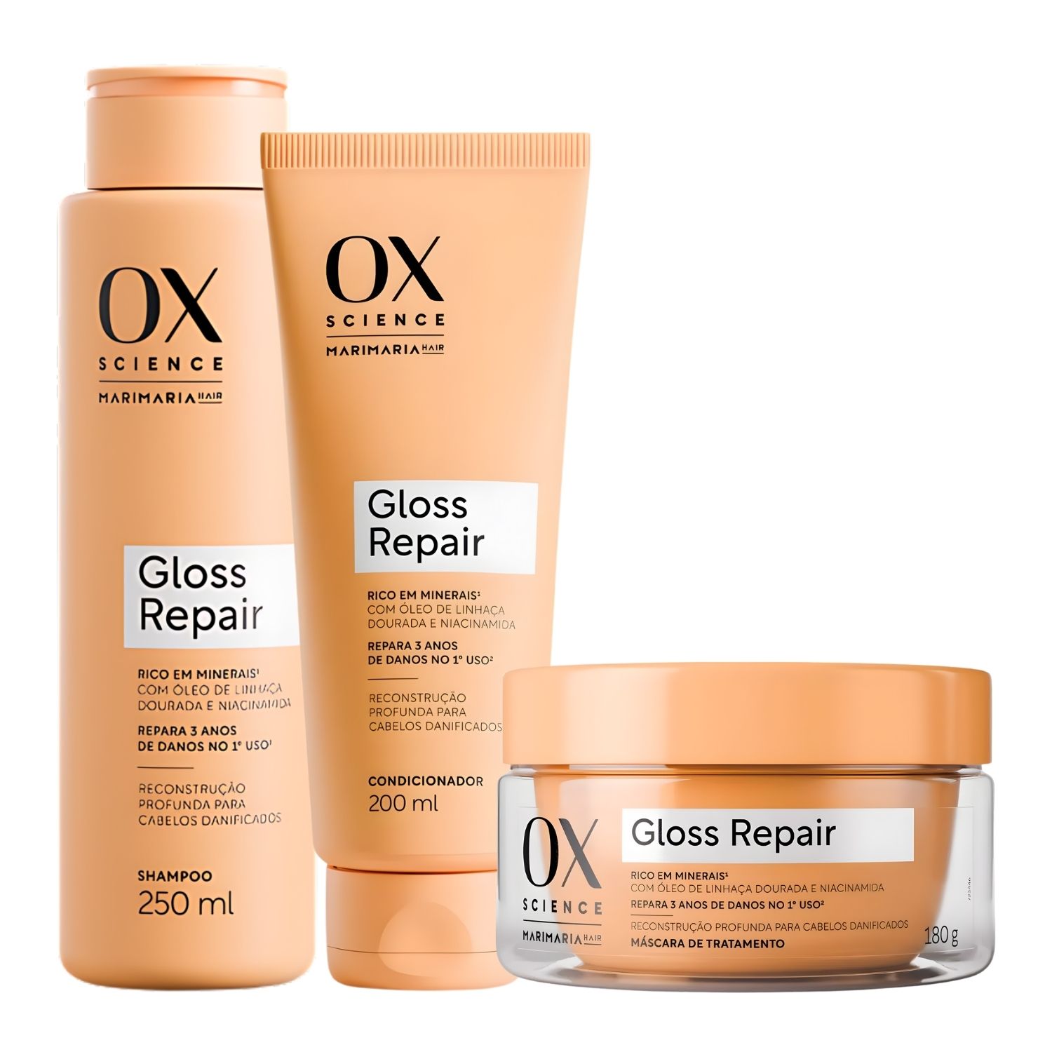 Descubra o poder transformador do Kit Ox Science Mari Maria Hair Gloss Repair, uma solução completa da OX para revitalizar seus cabelos. Desenvolvido para combater os danos, a opacidade e o frizz, este kit oferece um tratamento intensivo que restaura o brilho e a saúde dos fios, proporcionando uma experiência de salão em casa. Composto por Shampoo 250ml, Condicionador 200ml e Máscara de Tratamento 180g, ele é a escolha ideal para quem busca cabelos deslumbrantes e cheios de vida, com resultados visíveis desde a primeira aplicação.