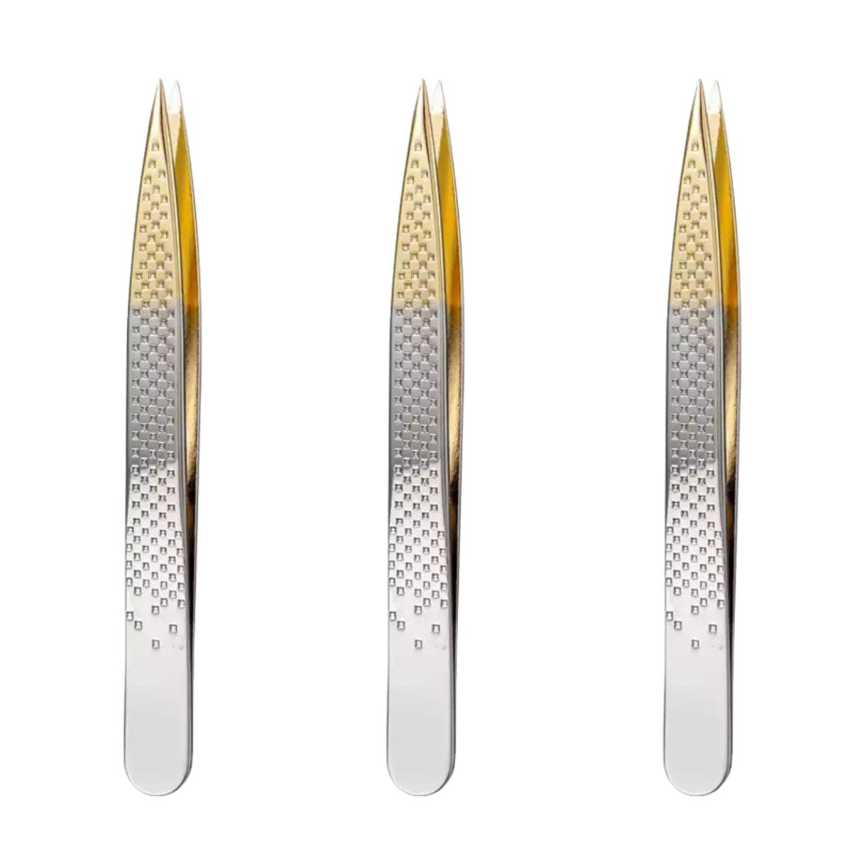 - 03 Pinças Silver Gold Enox Belliz Ponta Fina Ref:1702.