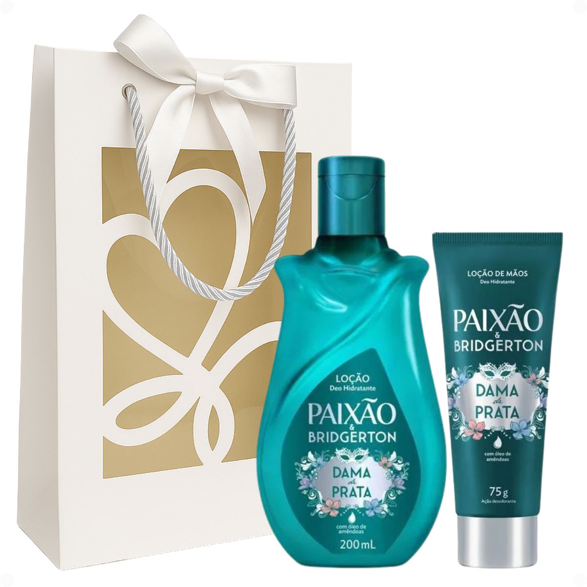 O Kit Paixão Bridgerton Dama de Prata da marca PAIXÃO oferece uma experiência de cuidado completa e sofisticada, ideal para quem busca transformar sua rotina em um ritual digno da alta sociedade. Este conjunto exclusivo, inspirado no universo Bridgerton, foi cuidadosamente desenvolvido para proporcionar uma pele intensamente hidratada, nutrida e perfumada por muito mais tempo.