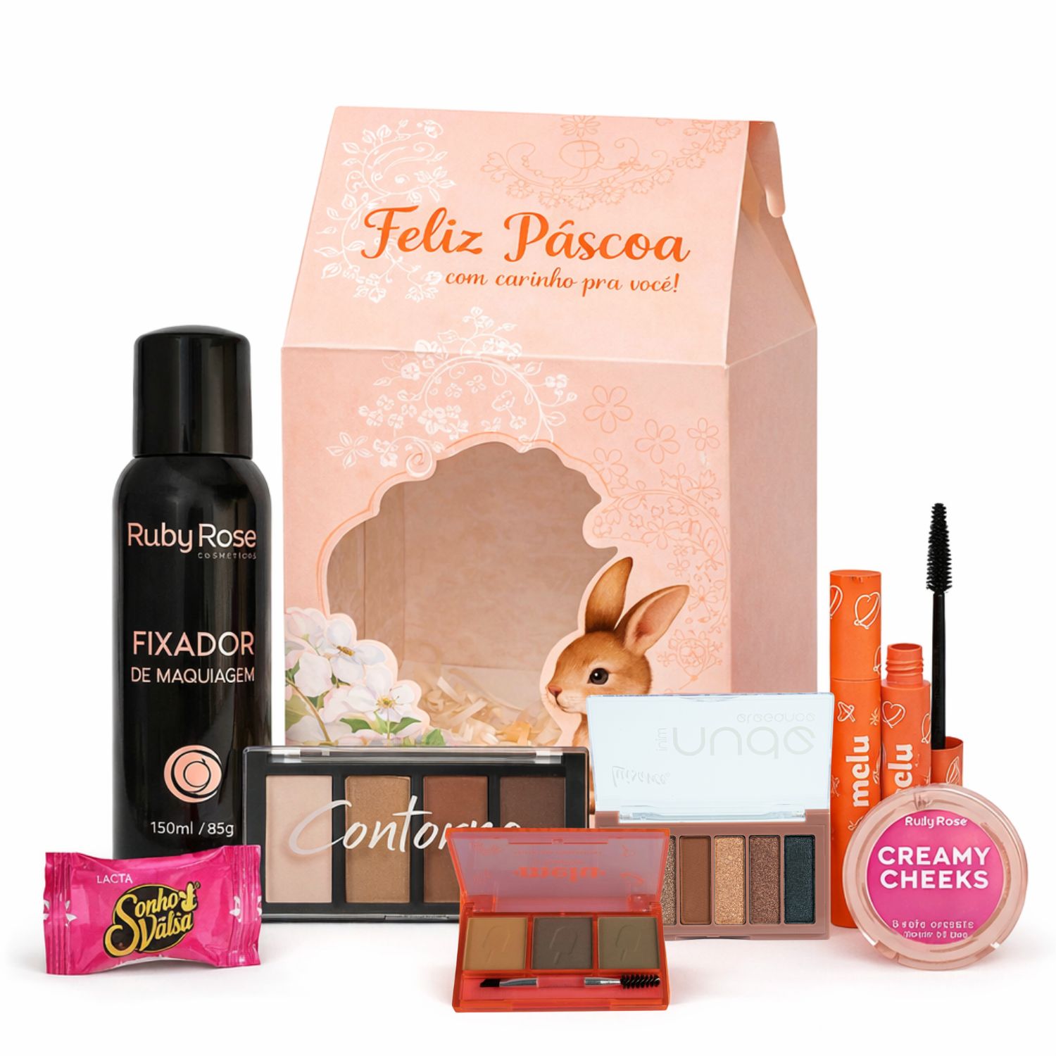 Prepare-se para celebrar a Páscoa com o exclusivo Kit Páscoa Maquiagem RUBY ROSE, uma seleção completa para realçar sua beleza e despertar a alegria desta data especial. Este kit cuidadosamente montado pela RUBY ROSE inclui itens essenciais como Blush, Máscara, Paleta de Sobrancelhas, Paleta de Sombras, Contorno e Fixador, proporcionando tudo o que você precisa para criar looks deslumbrantes e duradouros. Ideal para quem busca praticidade, qualidade e um toque festivo em um único conjunto, este kit é a escolha perfeita para presentear ou para se presentear nesta Páscoa, garantindo makes incríveis e momentos inesquecíveis. Celebre a beleza e a renovação da Páscoa com este kit que é sinônimo de alegria e auto cuidado, perfeito para todas as idades e estilos.