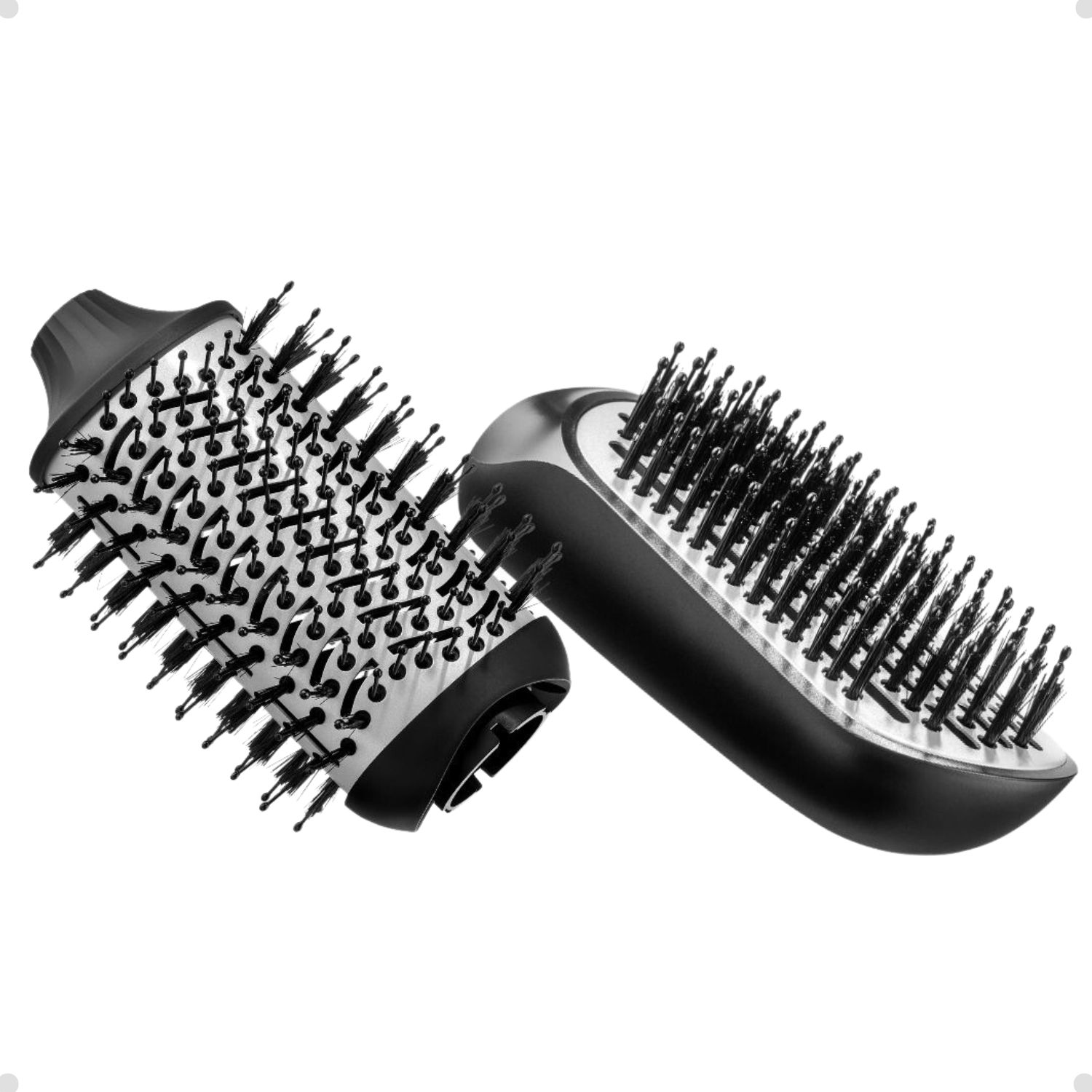-Cerdas de Nylon Dupla Altura: Melhor tração ao cabelo, propocionando fios polidos com muito mais brilho.