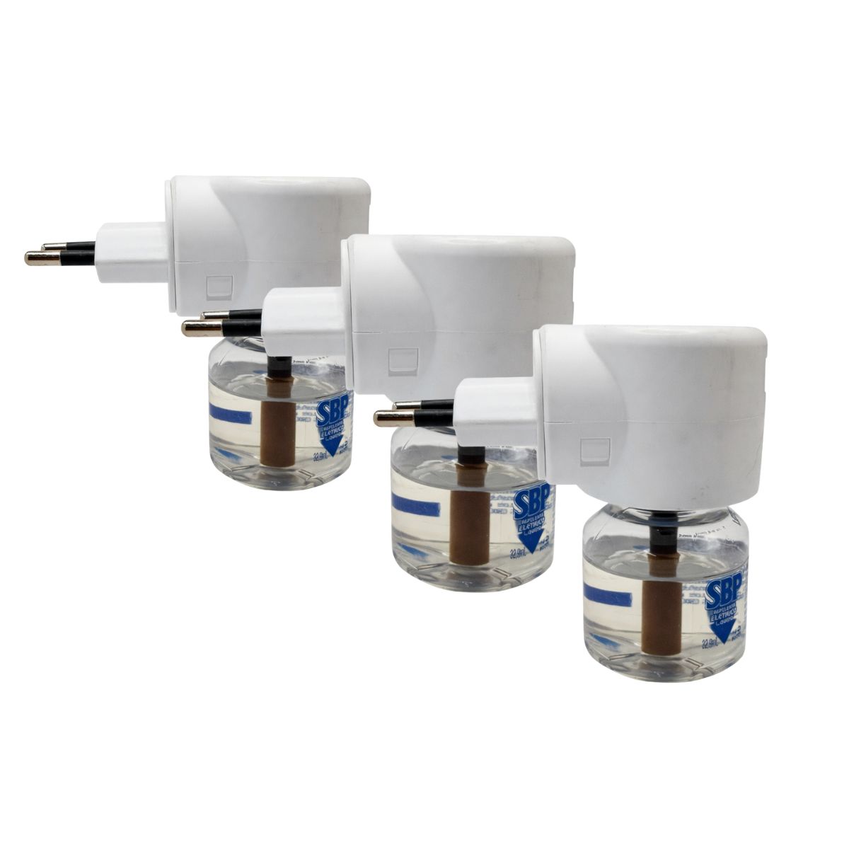 - 03 Caixas de Repelentes Elétricos Líquidos Sbp Cheiro Suave 32,9ml. Em cada caixa possui 01 Aparelho e 01 Refil de 32,9ml.