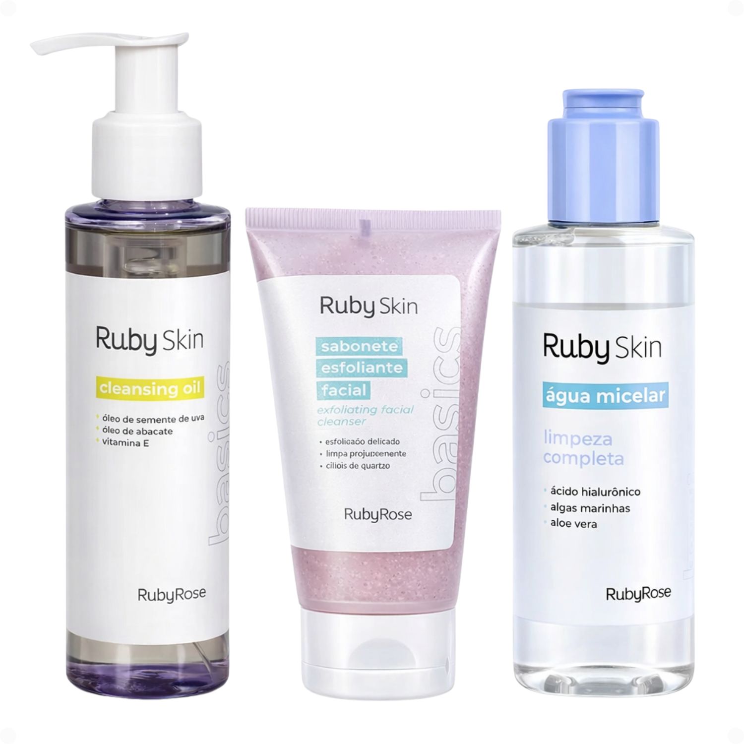 Kit Ruby Skin Basics: Cleansing Oil, Sabonete Esfoliante Facial e Água Micelar