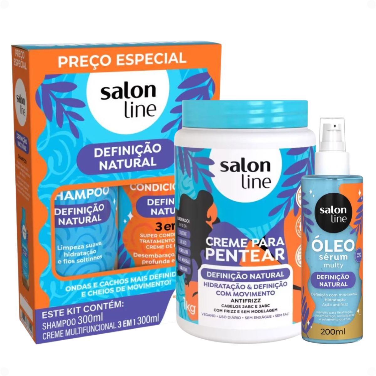 Kit Salon Line Definição Natural: Shampoo, Creme Multifuncional 300ml, Creme Para Pentear 1kg e Óleo Sérum Capilar 200ml