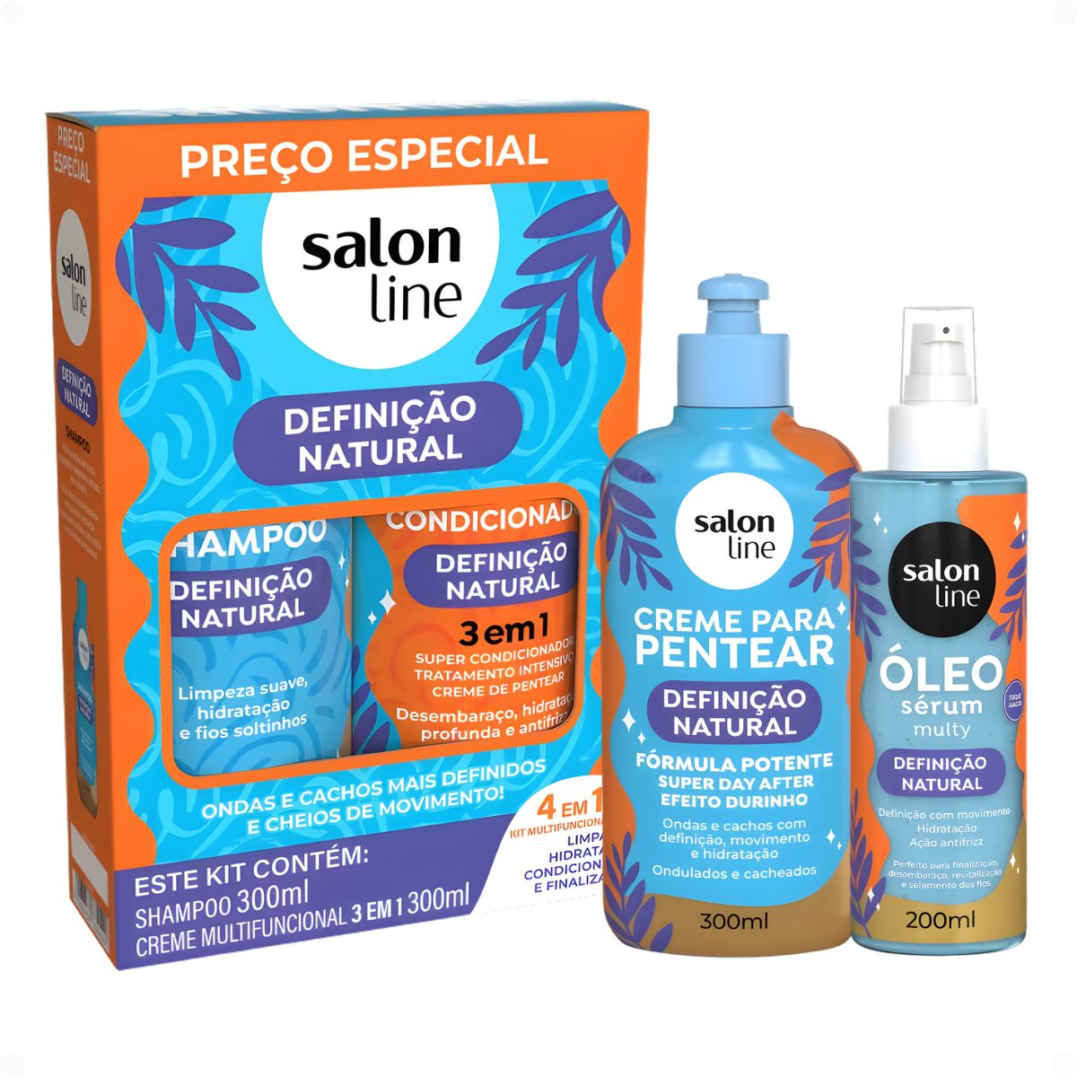 Kit Salon Line Definição Natural: Shampoo, Creme Multifuncional 300ml, Creme Para Pentear 300ml e Óleo Sérum Capilar 200ml