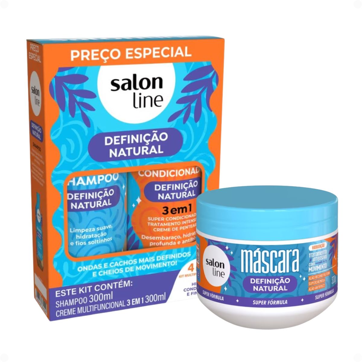 Kit Salon Line Definição Natural: Shampoo + Creme Multifuncional 300ml e Máscara Capilar 300g