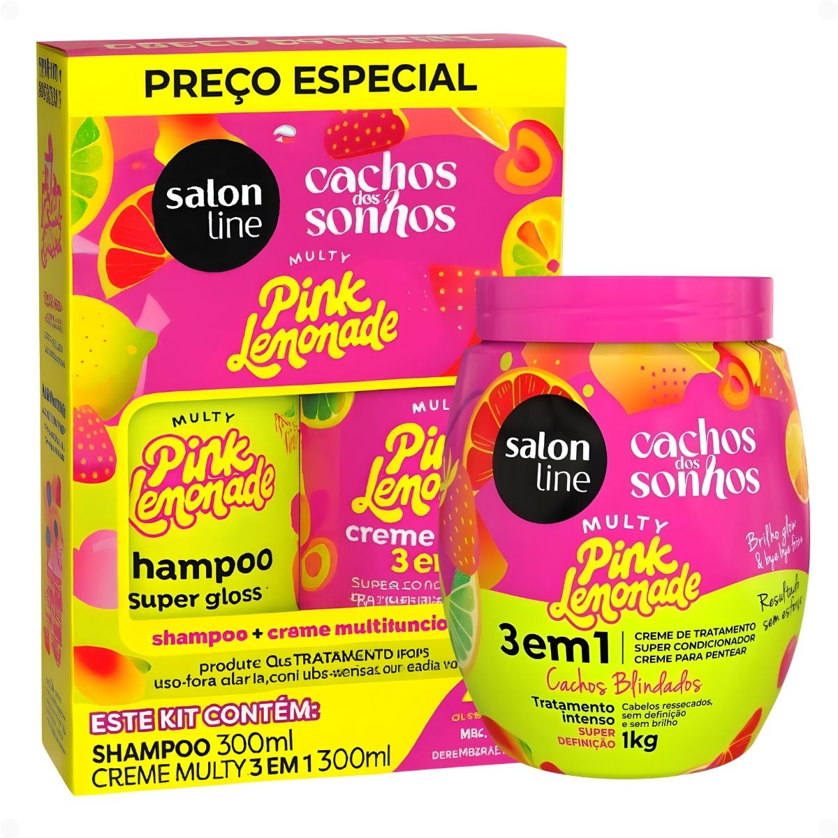 Descubra o poder do Kit Salon Line Pink Limonade: Shampoo e Creme Multifuncional 300ml + Creme Capilar 3 Em 1 1kg, a solução ideal para quem busca um cuidado completo e eficaz para cabelos cacheados. Este kit exclusivo da Salon Line foi cuidadosamente desenvolvido para oferecer limpeza suave e hidratação intensa, atendendo às necessidades específicas dos seus cachos. Com uma fórmula enriquecida com ingredientes nutritivos como o D-Pantenol, ele proporciona resultados visíveis desde a primeira aplicação, garantindo definição, hidratação profunda e um brilho irresistível.