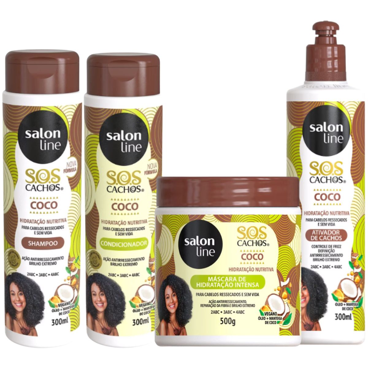 - 01 Ativador de Cachos Salon Line Sos Cachos Coco Hidratação Nutritiva 300ml.