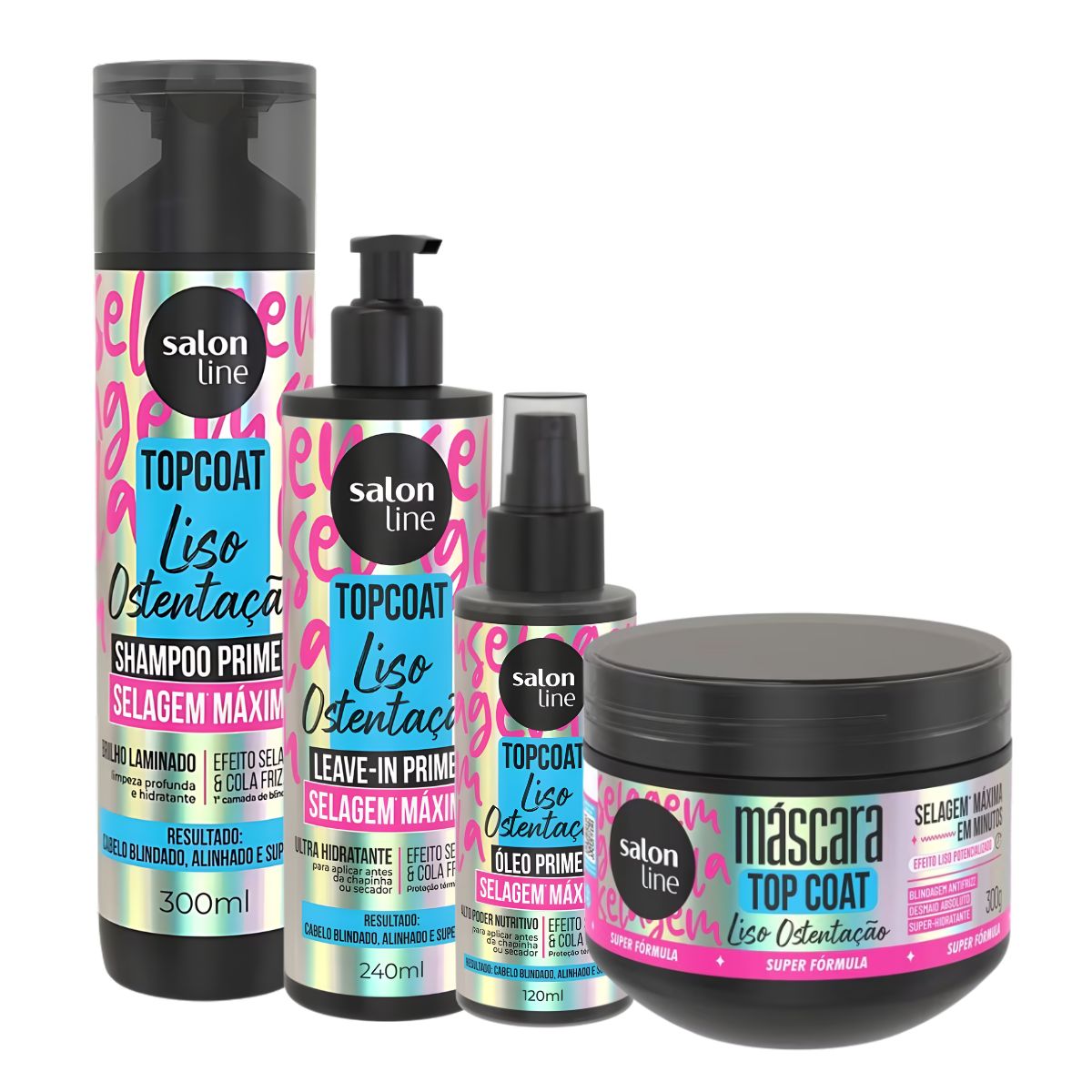- Linha completa Salon Line Top Coat Liso Ostentação para um tratamento sinérgico, potencializando os resultados.