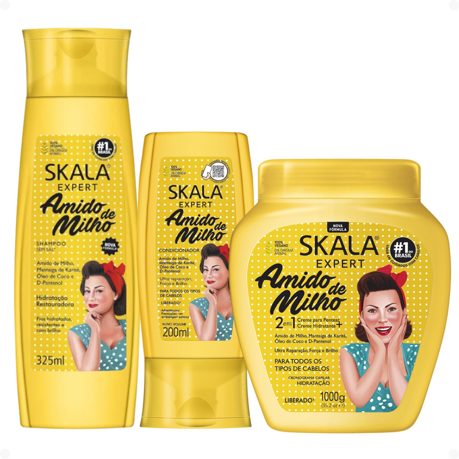 O Kit Skala Expert Amido de Milho oferece uma solução completa para o cuidado diário dos seus cabelos. Formulado para ser um aliado versátil, este kit é ideal para quem busca ultra reparação, força e brilho intenso. Perfeito para todos os tipos de cabelo, especialmente os opacos e danificados, ele proporciona hidratação, nutrição e a reconstrução da fibra capilar, transformando seus fios a cada uso.