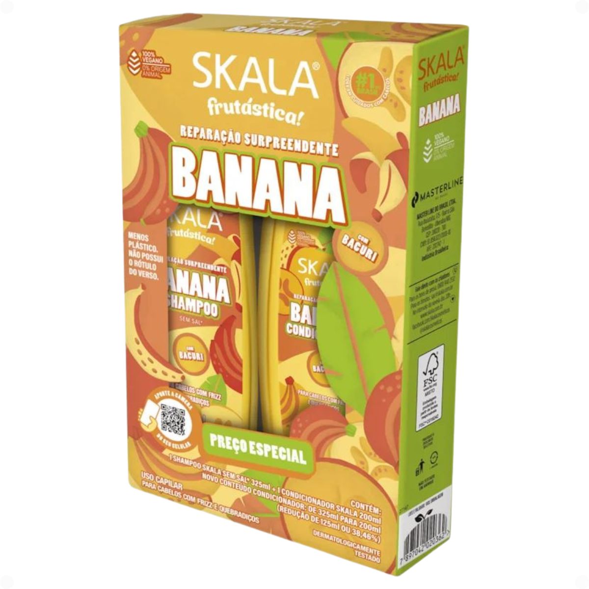 Descubra o poder da natureza para seus cabelos com o Kit Skala Frutástica! Banana. Desenvolvido pela SKALA, este kit completo oferece um tratamento intensivo para fios que necessitam de reparação, força e redução do frizz. Sua fórmula exclusiva, enriquecida com extrato de banana e ceramidas, atua profundamente para deixar seus cabelos visivelmente mais macios, brilhantes e saudáveis, transformando a rotina de cuidados em uma experiência nutritiva e revitalizante.