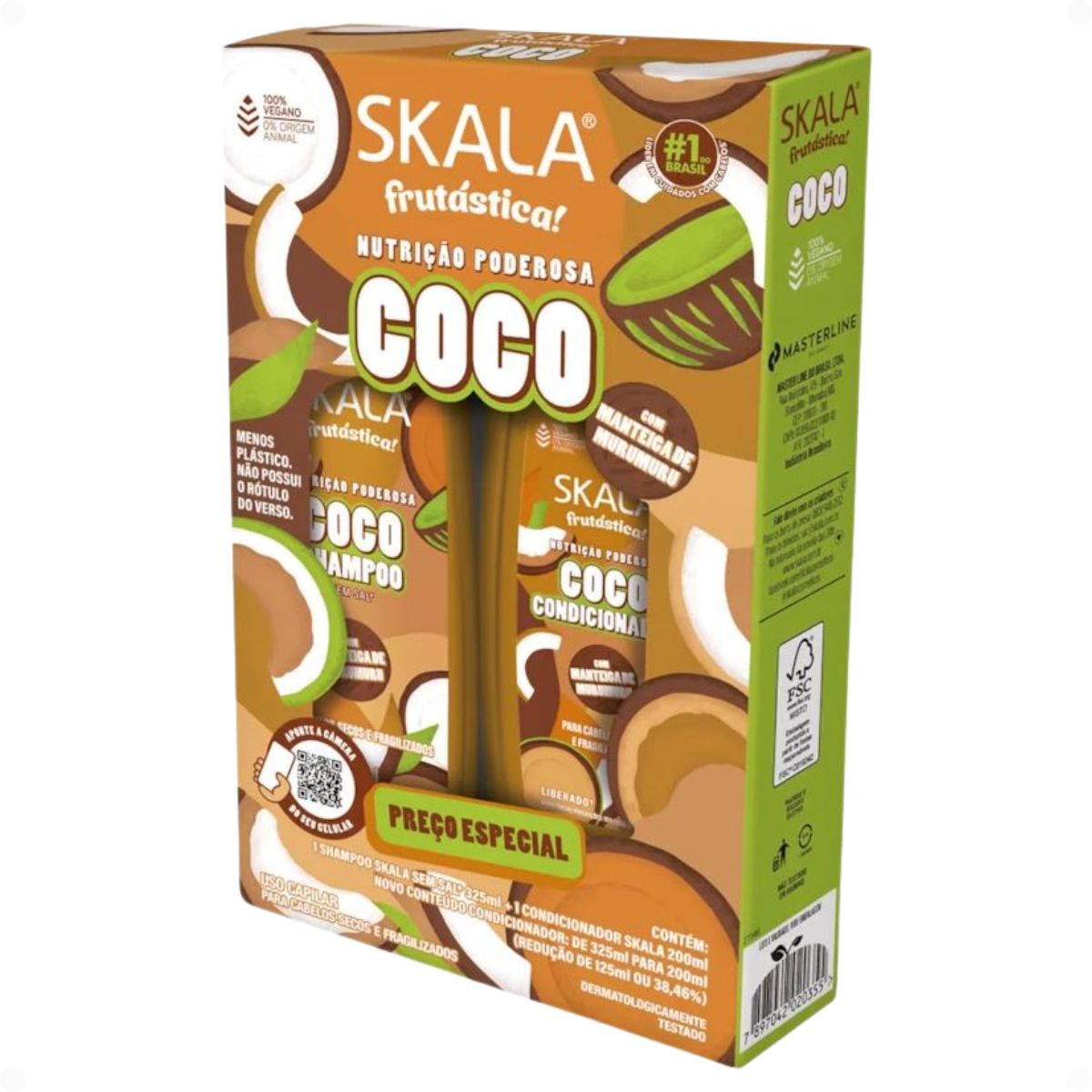 Transforme seus cabelos com o poder nutritivo do Kit Skala Frutástica Coco! Se você sofre com cabelos ressecados, opacos e sem vida, este é o tratamento que você precisa. Este kit exclusivo da SKALA, composto por Shampoo 325ml e Condicionador 200ml, oferece uma hidratação profunda e revitalização completa, combatendo o ressecamento e devolvendo o brilho e a maciez aos seus fios. Ideal para todos os tipos de cabelos que buscam nutrição intensa e um toque de leveza, o Kit Skala Frutástica Coco é a solução perfeita para um cabelo saudável e radiante.