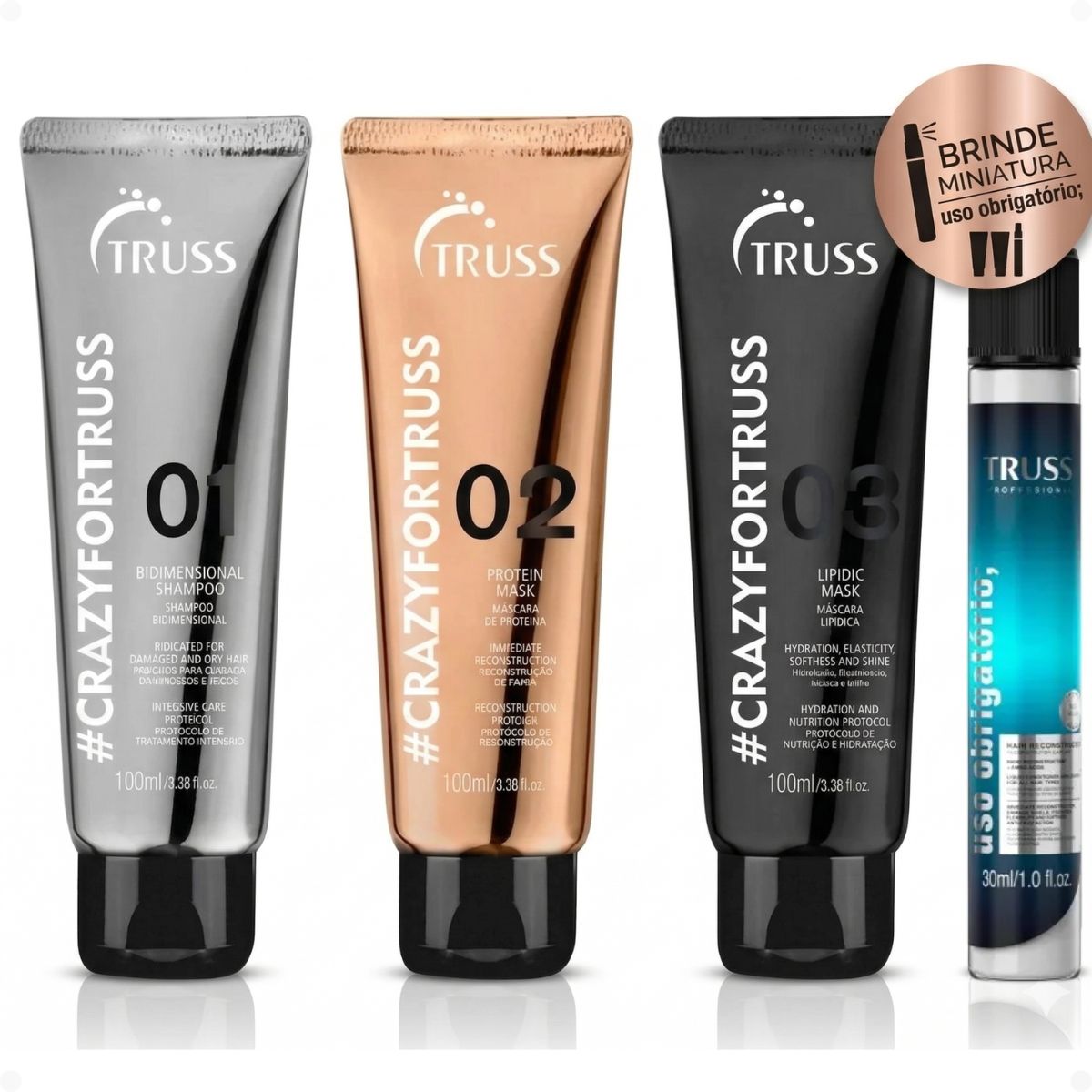 O Kit Truss Crazy For Truss + Uso Obrigatório 30ml é uma ótima opção para quem deseja restaurar a aparência saudável dos cabelos com praticidade. Sua combinação de shampoo, máscaras de tratamento e finalizador ajuda a fortalecer, nutrir e melhorar o aspecto dos fios, deixando o cabelo mais macio, brilhante e com menos frizz.