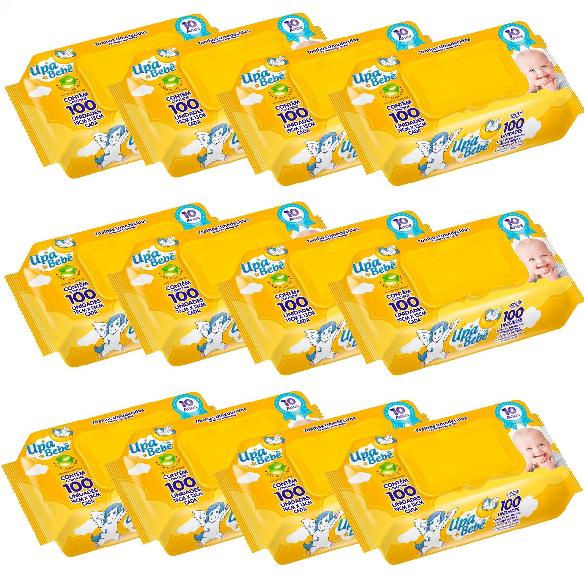 Kit Com 12 Toalhas Umedecidas Upa Bebê 100 Unidades Cada