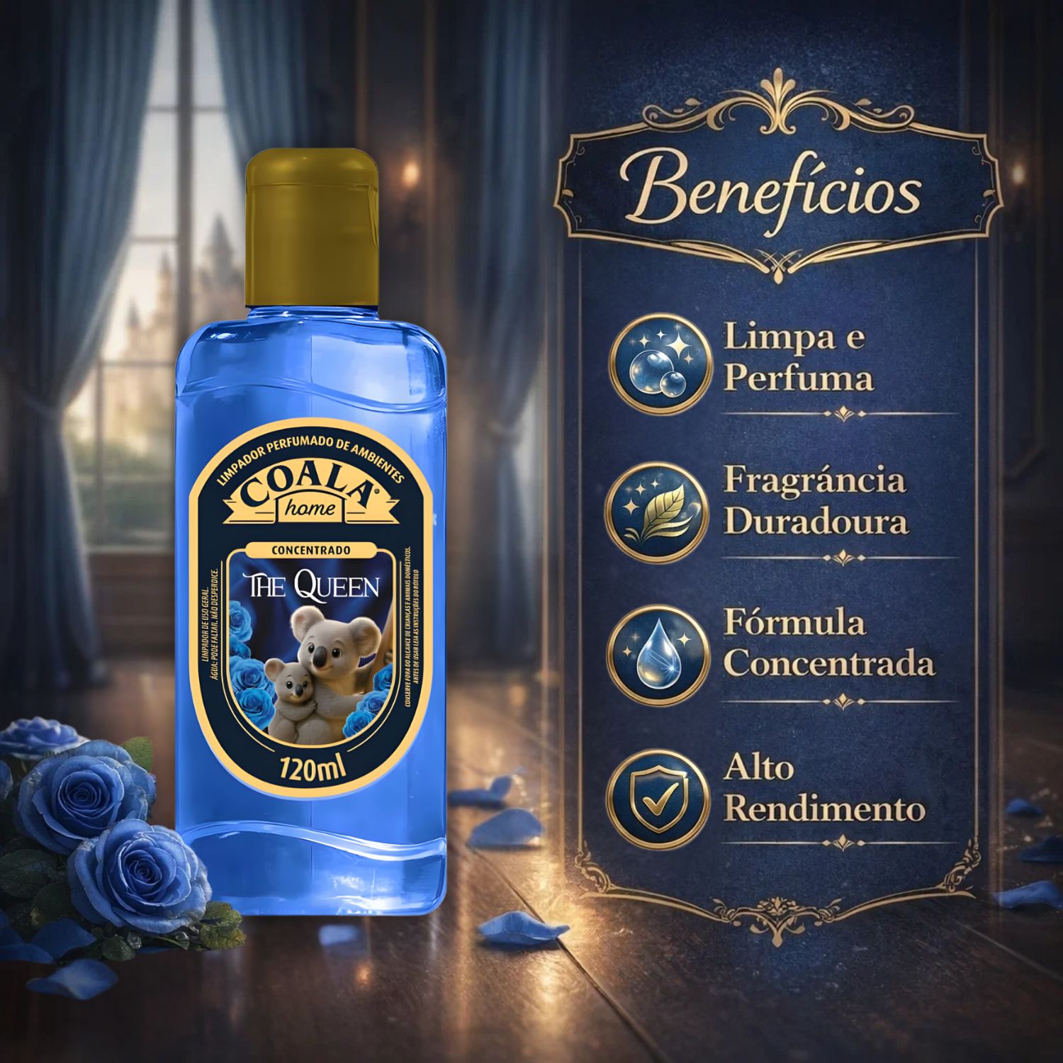 O Limpador Perfumado Coala Home The Queen 120ml é perfeito para a limpeza diária de pisos, azulejos e outras superfícies laváveis, deixando um rastro de perfume por onde passa. É ideal para preparar sua casa para receber visitas, para momentos de relaxamento ou simplesmente para manter o ambiente sempre fresco e convidativo. Utilize-o após o preparo de refeições para eliminar odores, ou antes de receber convidados para criar uma atmosfera acolhedora e perfumada. Perfeito para usar em salas, quartos, banheiros e cozinhas.