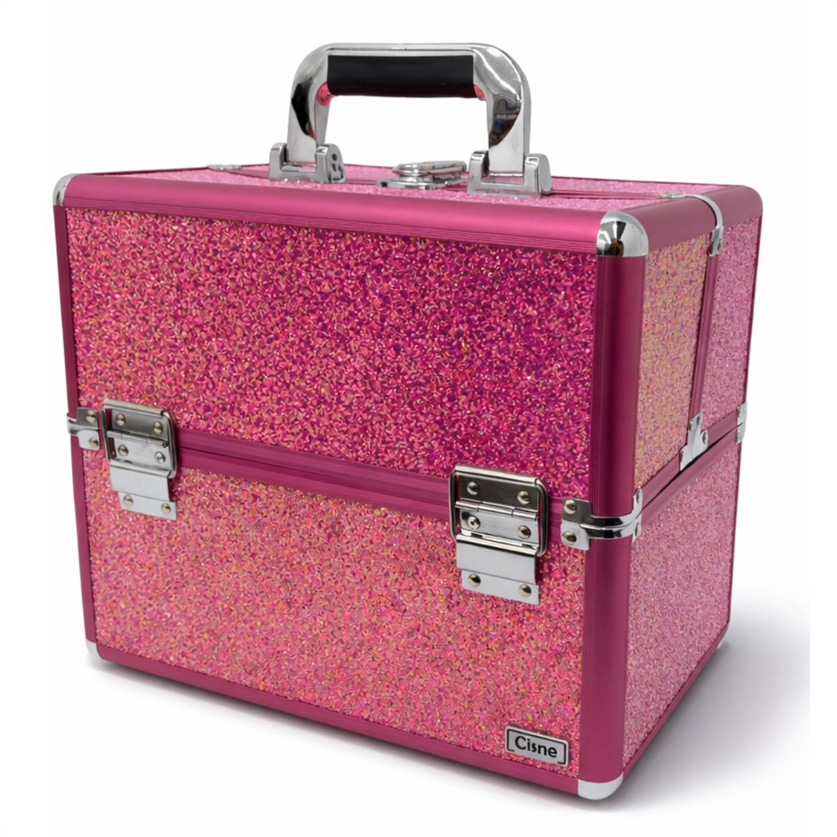 Maleta de Maquiagem Cisne Linha Shine Pink Glitter e Rosa – 3 Bandejas com Divisórias | CSN5192B