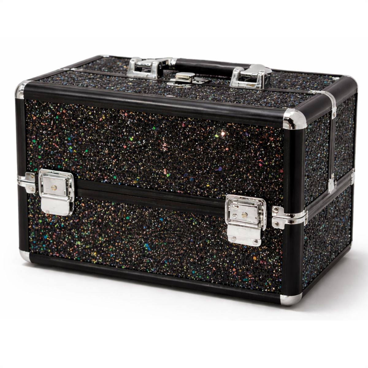 Maleta de Maquiagem Cisne Linha Shine Preto Glitter e Preto – 2 Bandejas | CSN-5142B