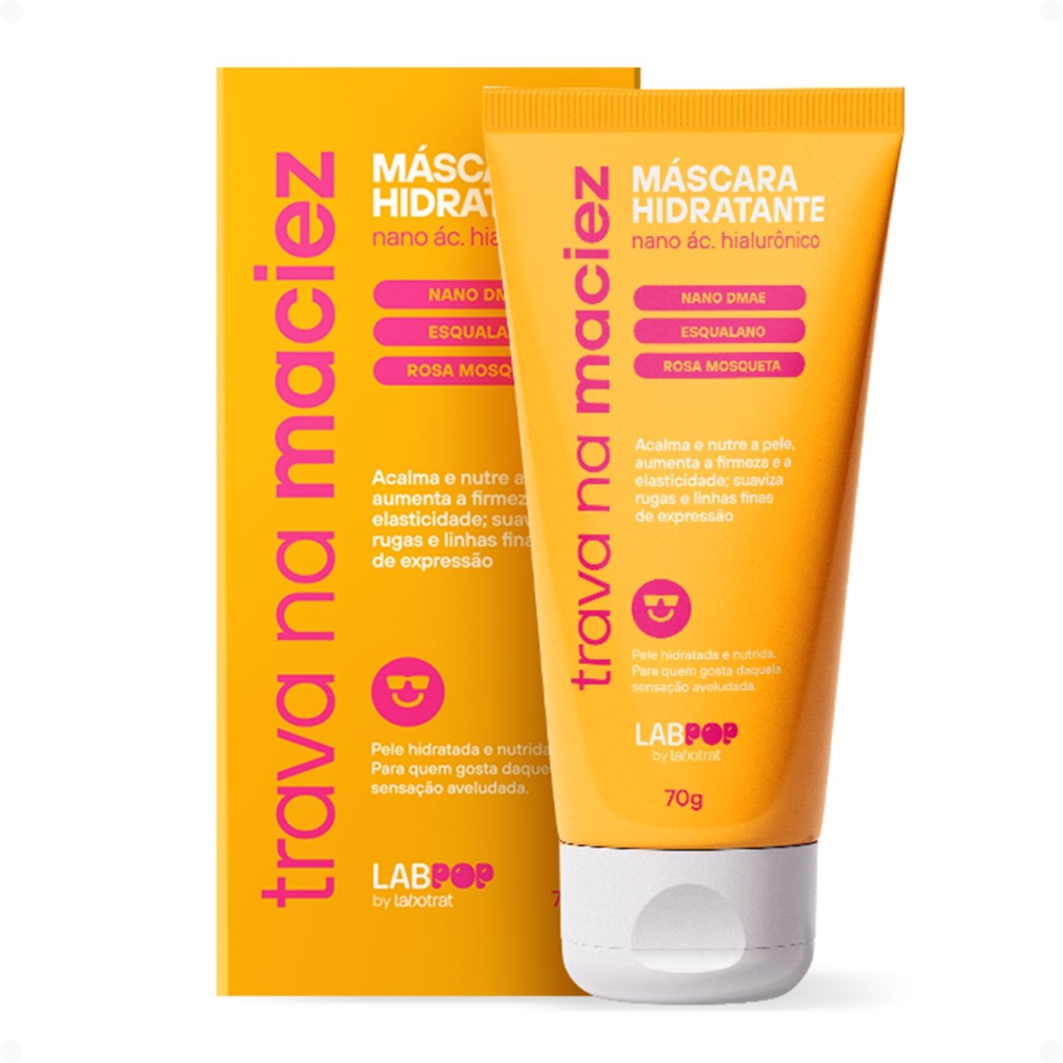 A Máscara Hidratante LabPop by Labotrat Trava na Maciez 70g foi desenvolvida para proporcionar hidratação intensa, nutrição e toque aveludado à pele, deixando o rosto mais macio, confortável e com aparência saudável. Sua fórmula reúne ativos reconhecidos no skincare, como Nano Ácido Hialurônico, Nano DMAE, Esqualano e Rosa Mosqueta, que ajudam a melhorar a textura da pele, promovendo sensação de cuidado profundo e bem-estar após o uso.