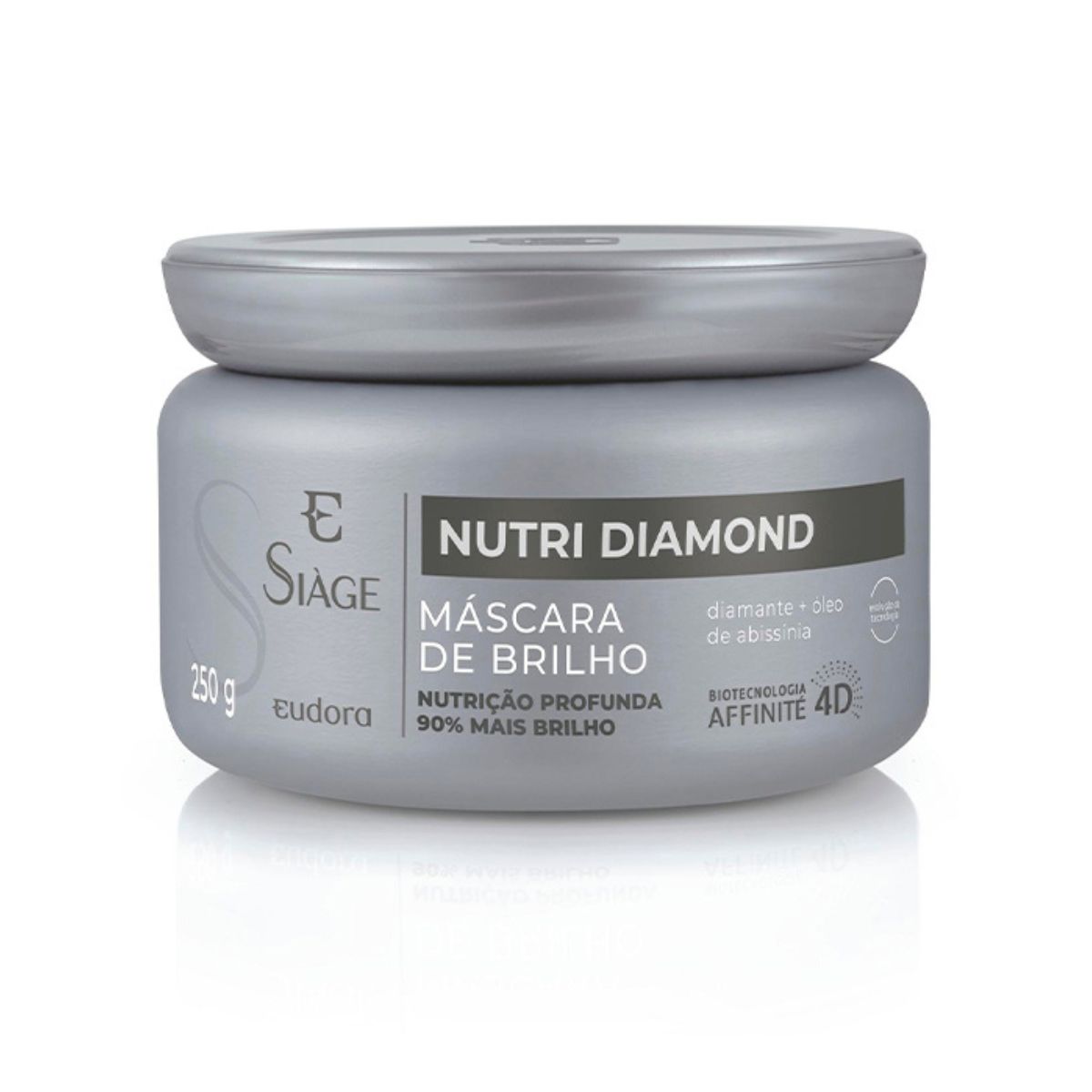 Máscara Siage Eudora Nutri Diamond:prolonga o brilho natural dos fios e nutrição já na primeira aplicação. Com partículas de diamante, o produto promove um brilho espelhado imediato. Nutre até a camada mais profunda do fio, interagindo com sua queratina natural. Reduz em 62% a quebra do fio durante a escovação.